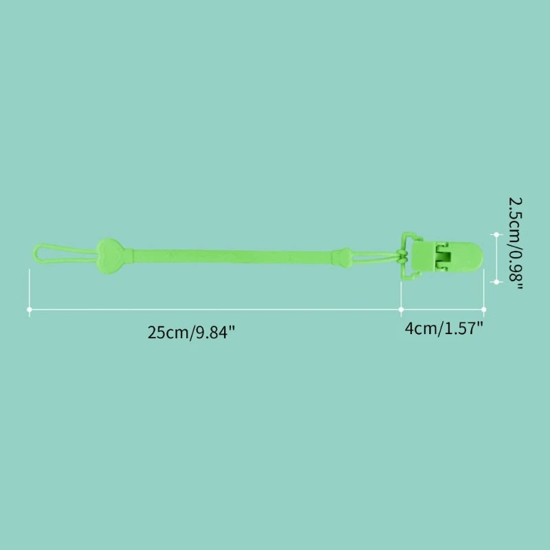 - Safety Design: Soft silicone strap with a durable plastic clip to keep pacifiers and toys secure.