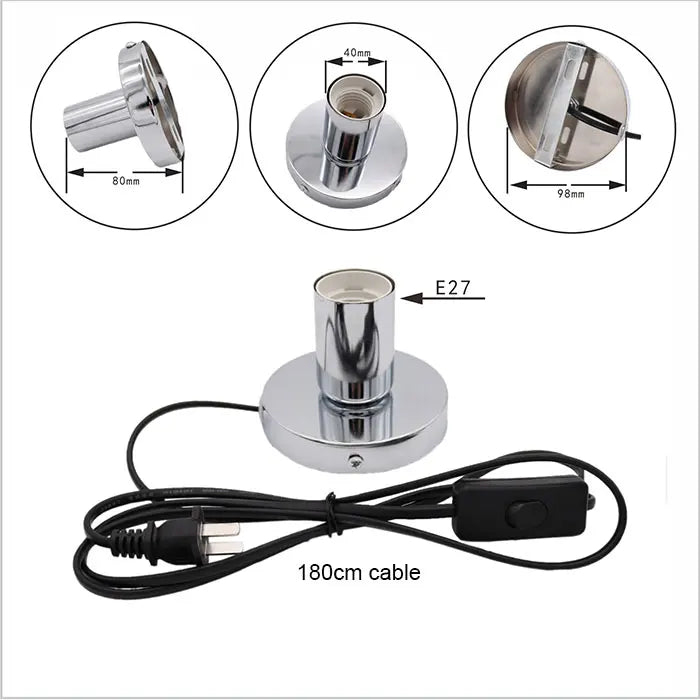 Anti-Slip Metal Desk Lamp Base, 180cm Cord, E27 E26 Holder, On/Off Switch, EU/AU/BS/US Plug