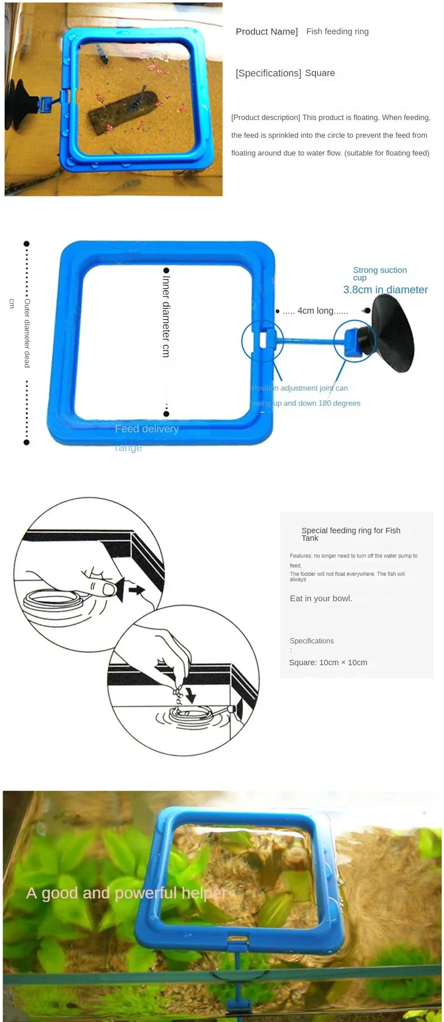 Aquarium Fish Feeding Rings with Suction Cups - Square & Round Holders