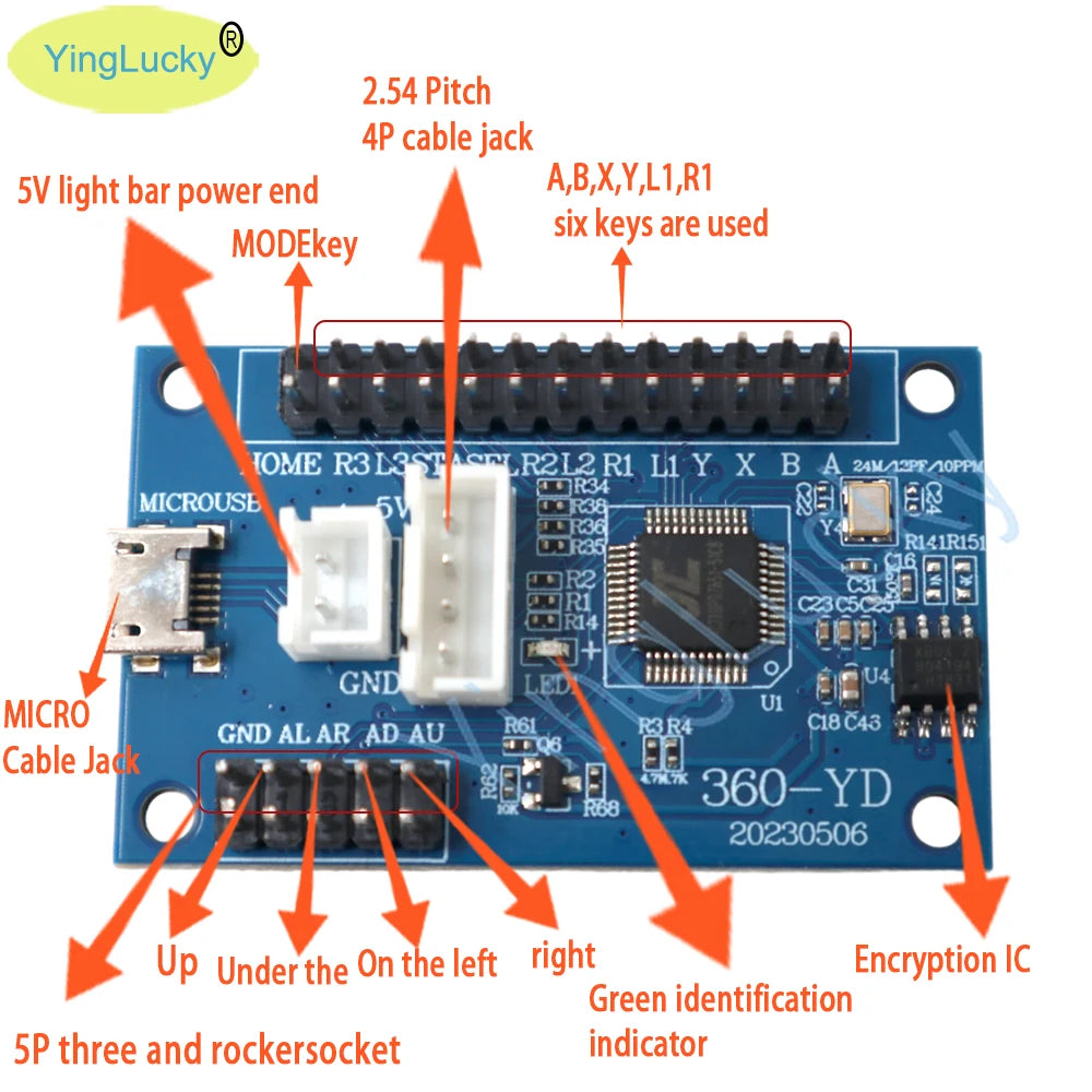 Arcade Gamepad Controller USB Board Zero Delay Support for Xbox 360, PC, Android with DIY Arcade Buttons & Cable
