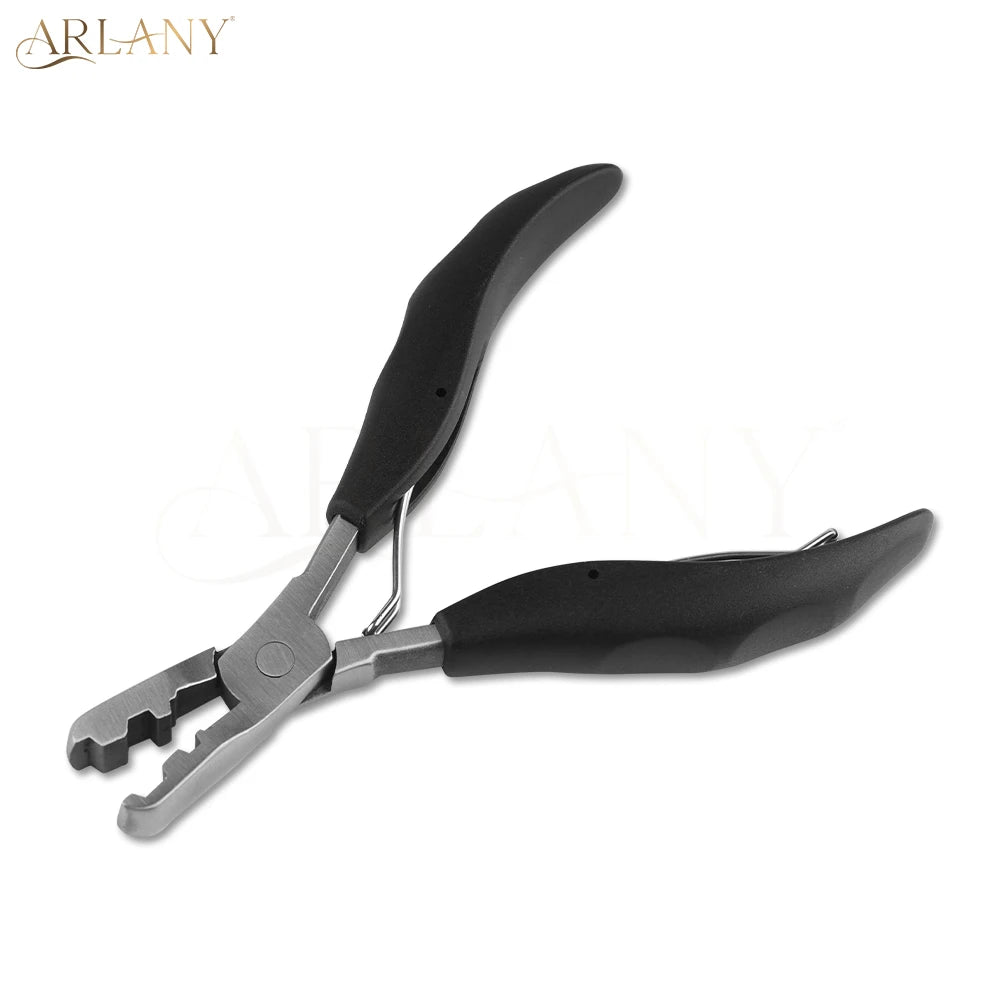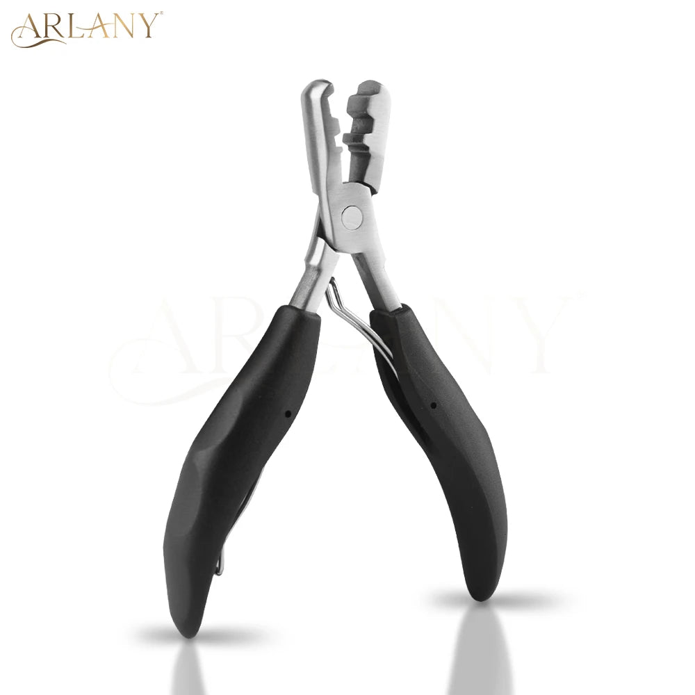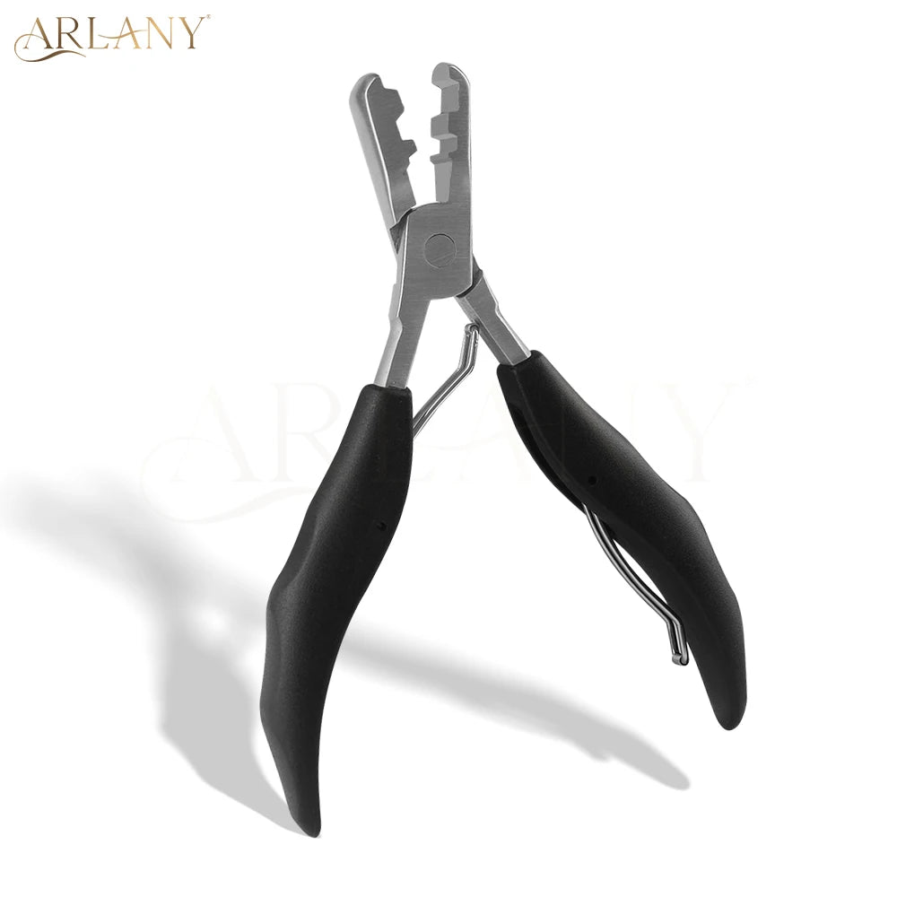 Introducing our professional-grade Fusion Hair Extension Pliers, designed for both salon and home use. Crafted from durable stainless steel and plastic, these pliers ensure long-lasting performance and reliability. The ergonomically designed handles provide a comfortable grip, reducing hand fatigue during extended use. Perfect for hairstylists and home users alike, these pliers facilitate the quick and safe removal of pre-bonded hair extensions.