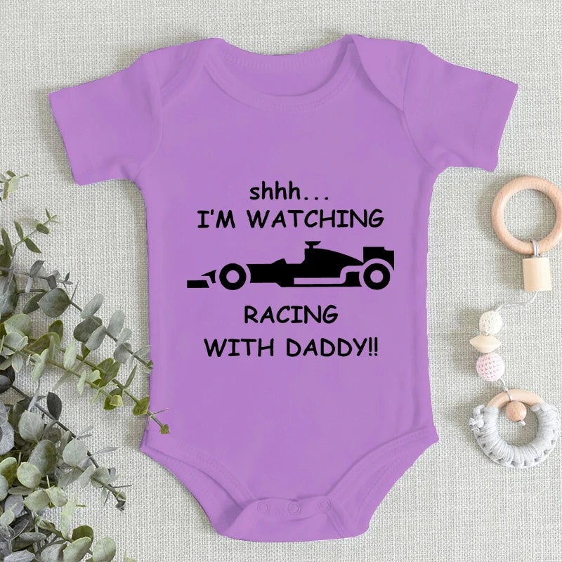 Baby Boy Racing Romper - "Watching Racing With Daddy" Print Short Sleeve 100% Cotton Jumpsuit for Newborns
