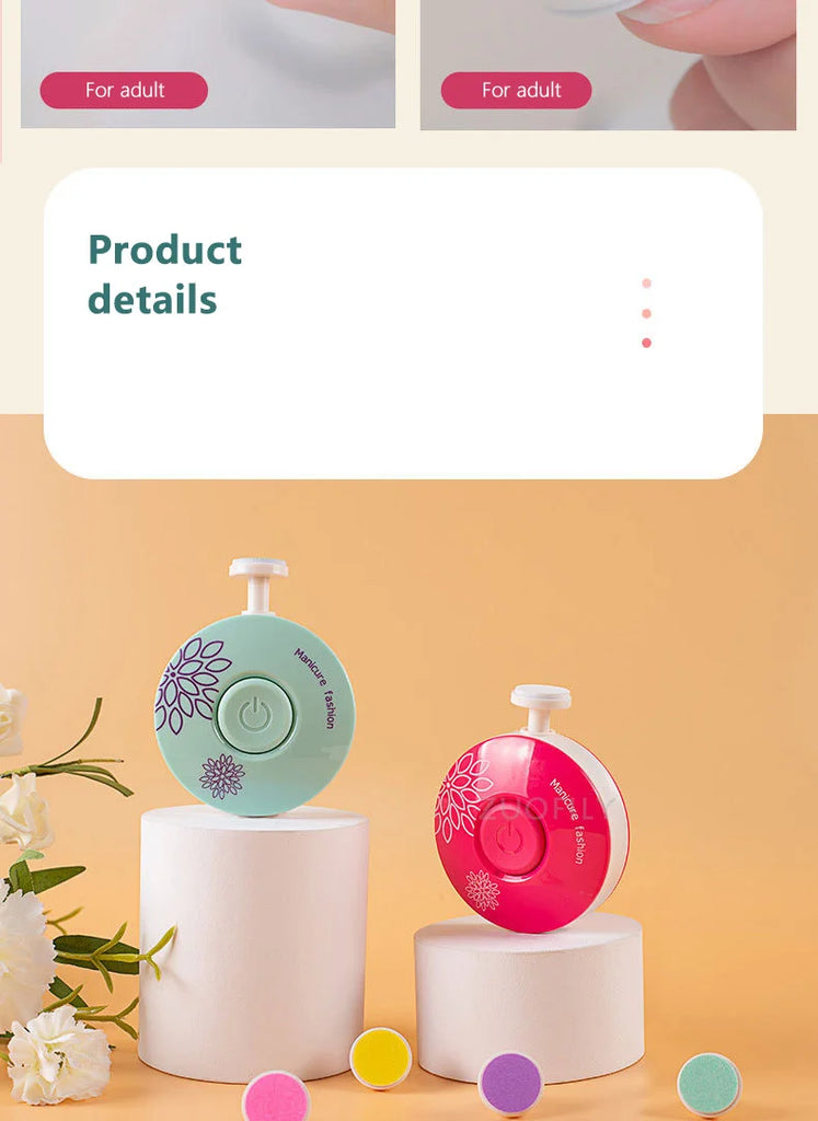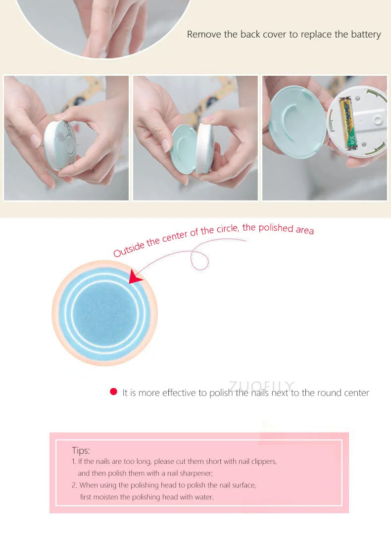 This nail polisher tool is suitable for all ages, from newborns to adults, making it an essential part of your baby care kit. It operates on a single AA battery, ensuring quiet and effective performance, and includes multiple heads for different nail care needs.