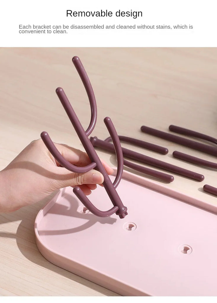 Baby Bottle Drying Rack & Nipple Holder, Feeding Cup Storage, Bottle Cleaning & Draining System