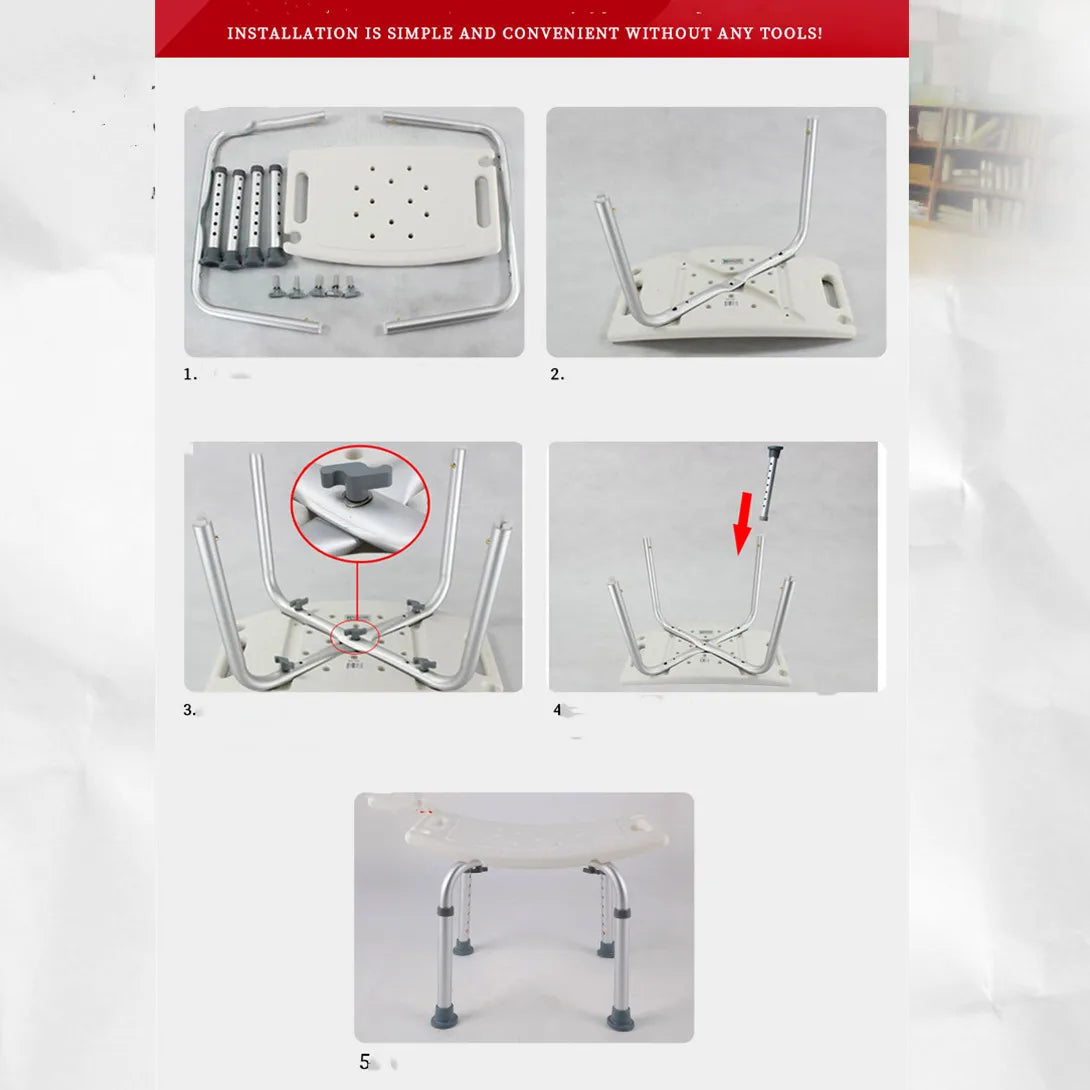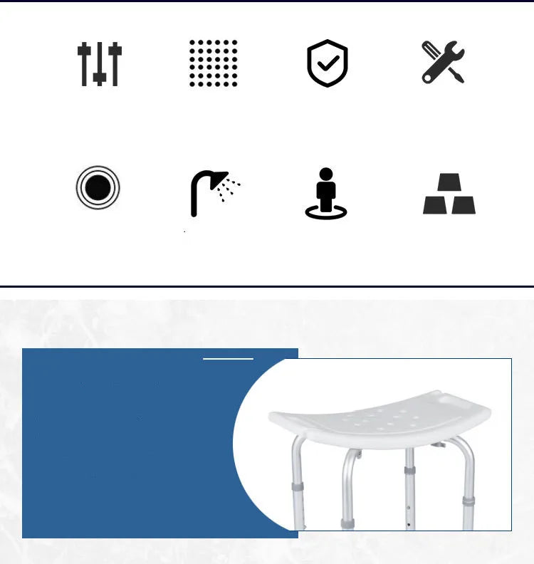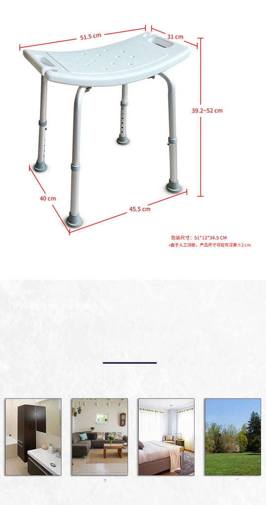 Folding Non-Slip Shower Chair for Elderly, Adjustable 6 Heights, Bathroom Stool & Bench
