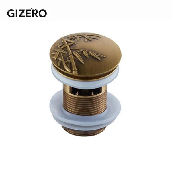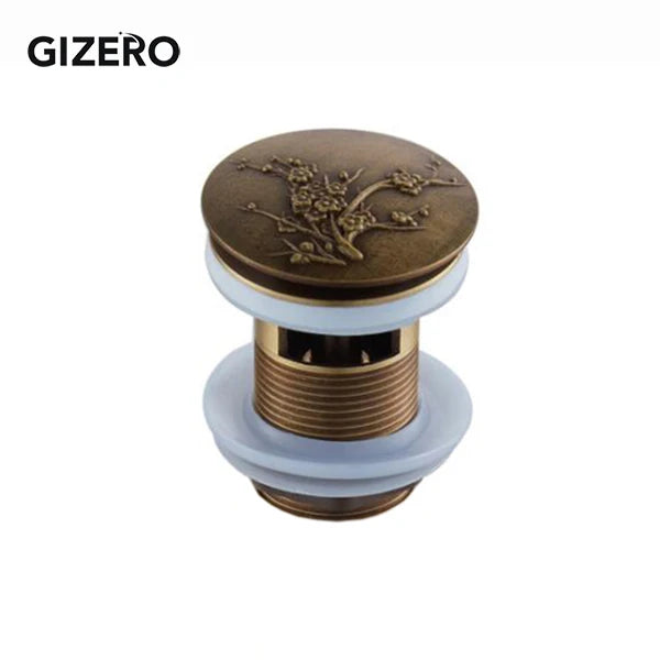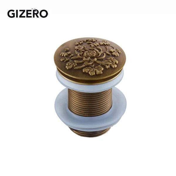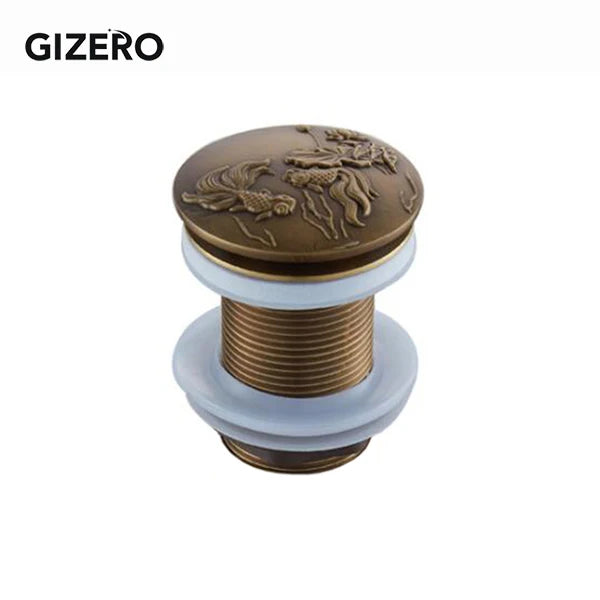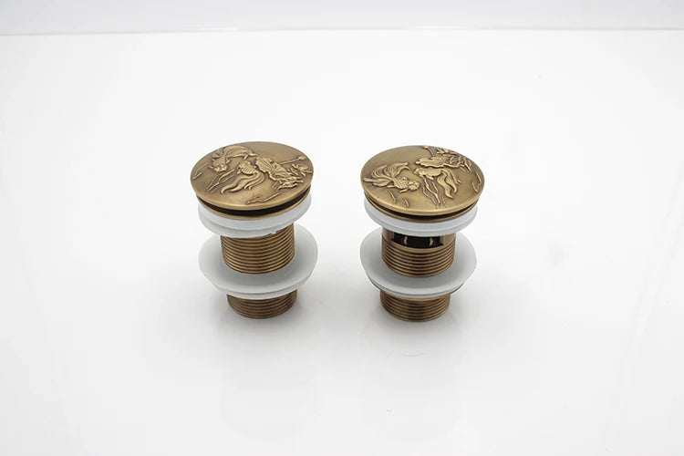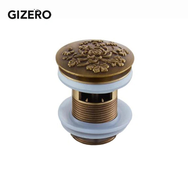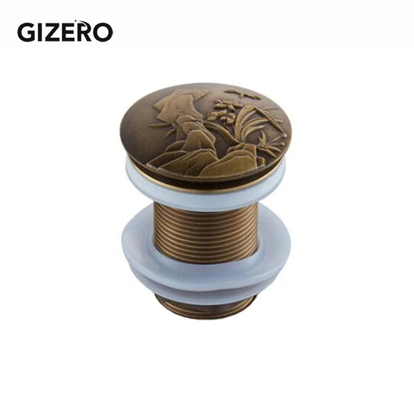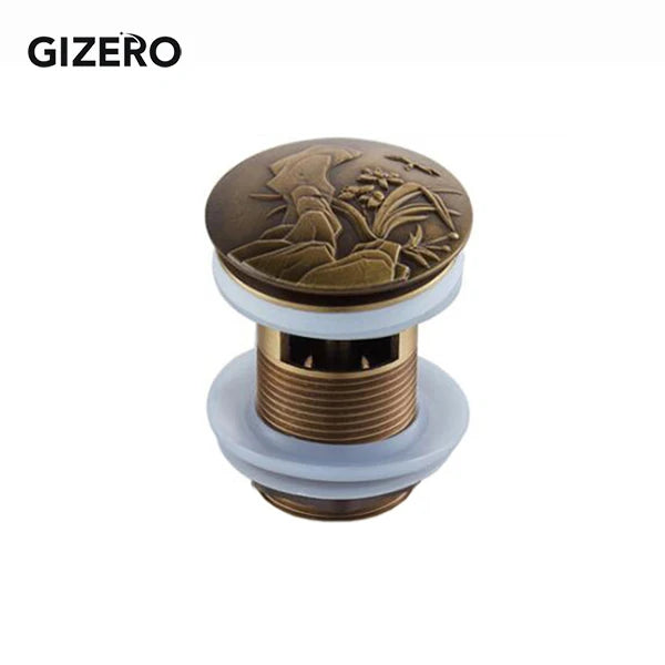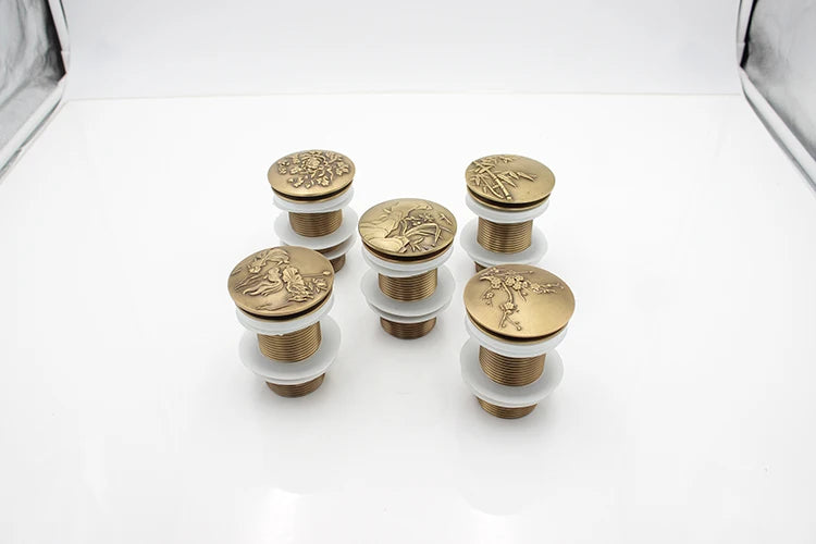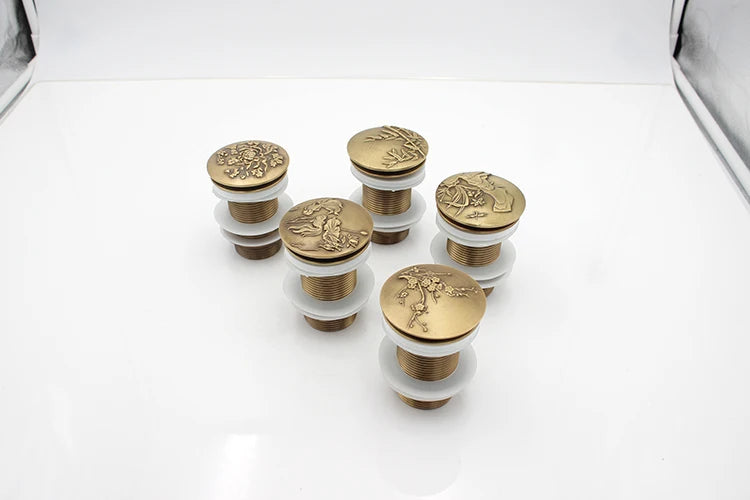 Antique Brass Carved Pop Up Bathroom Sink Drain Stopper Vanity Basin Waste Clic-Clac Zr2023