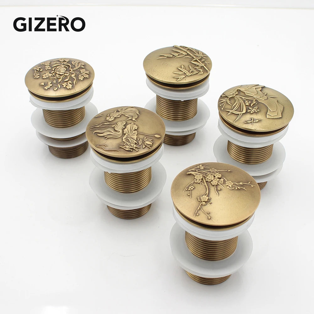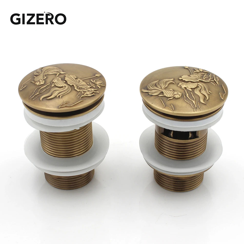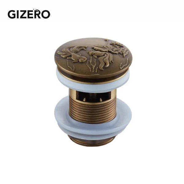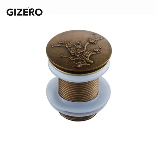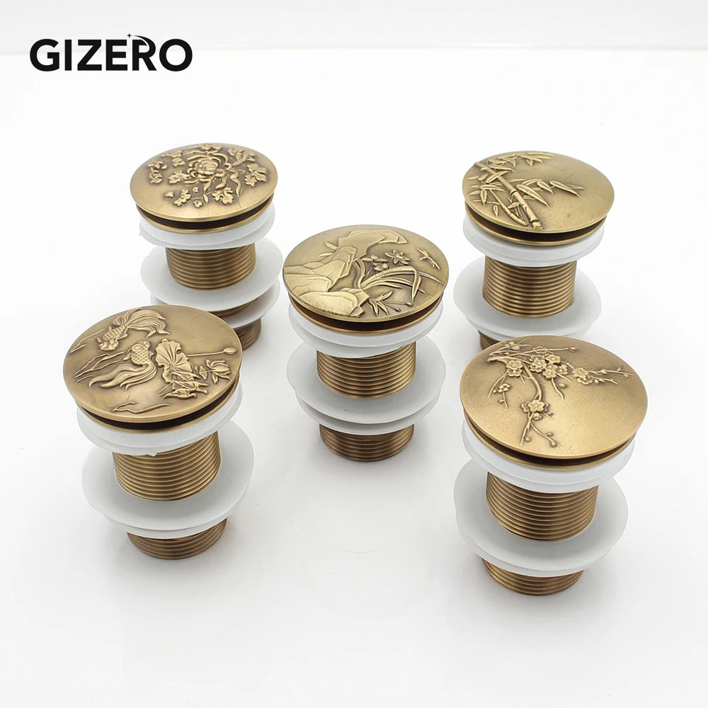 Antique Brass Carved Pop Up Bathroom Sink Drain Stopper Vanity Basin Waste Clic-Clac Zr2023