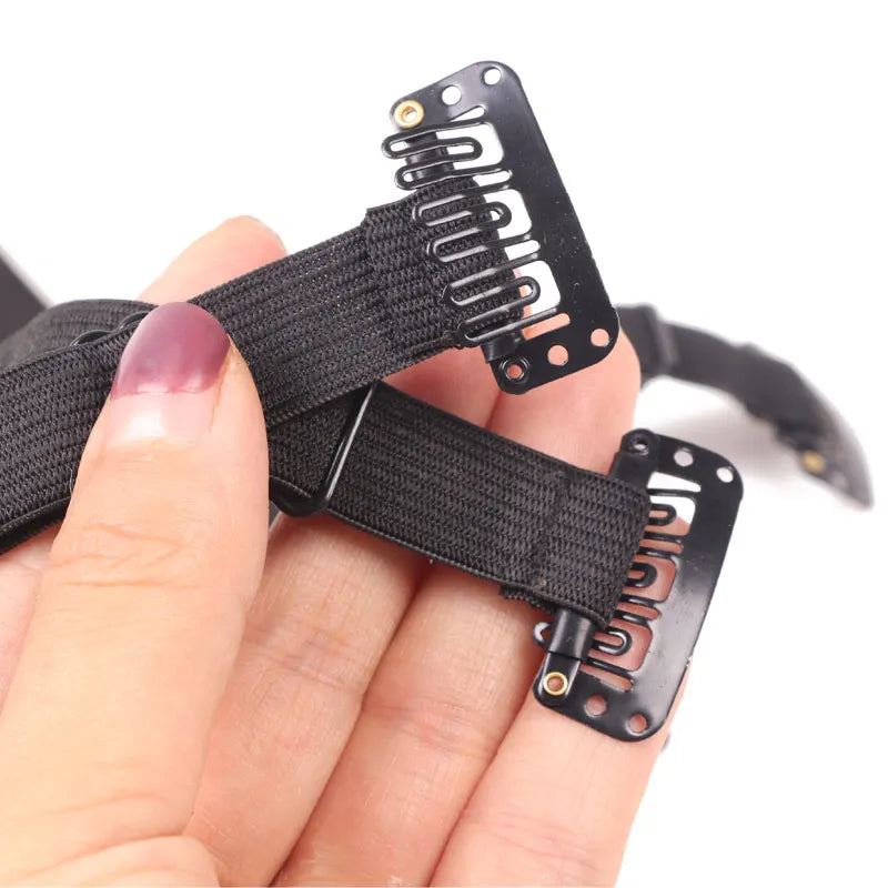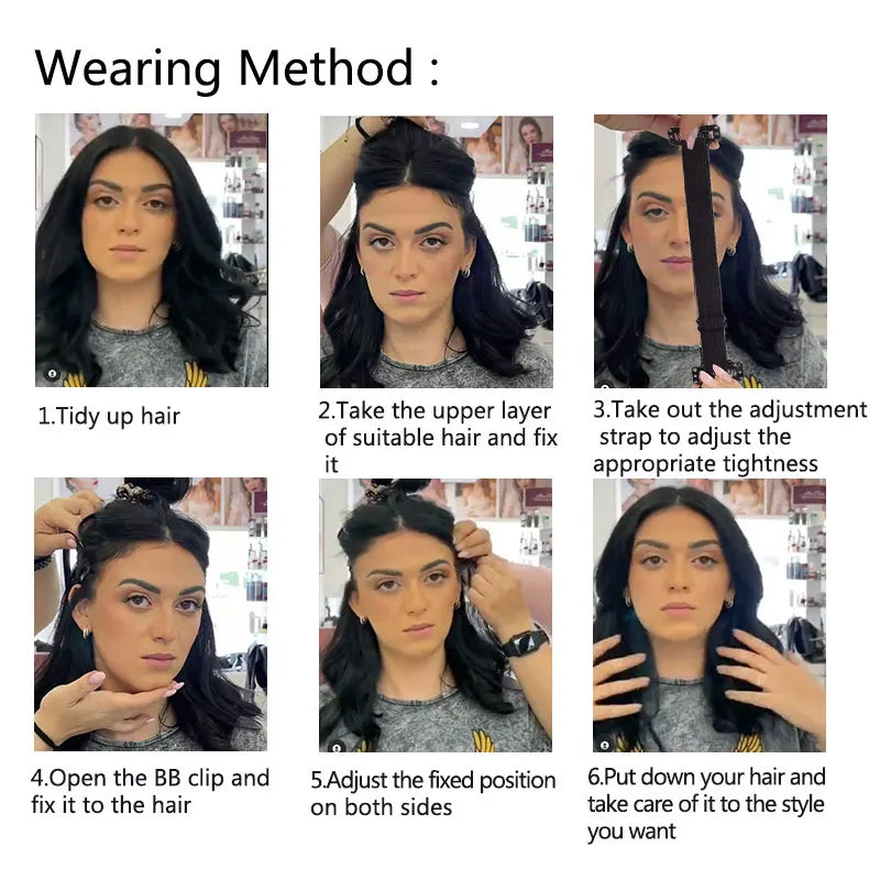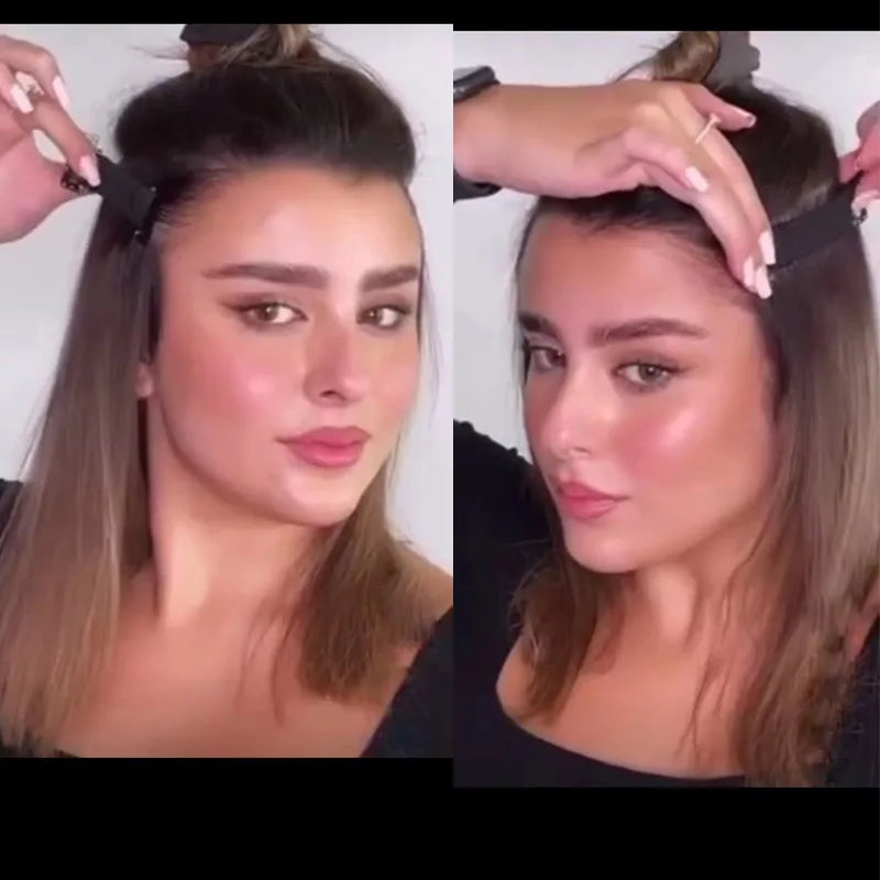 4. Pull one side back and clip the lift band above the ear, then pull it along the hairline to the opposite side and clip.