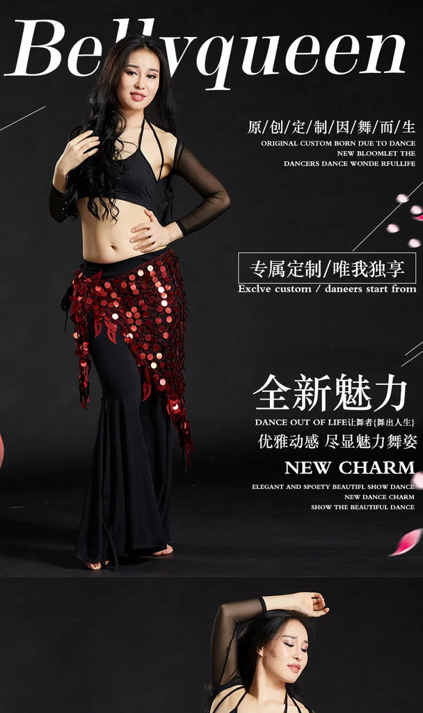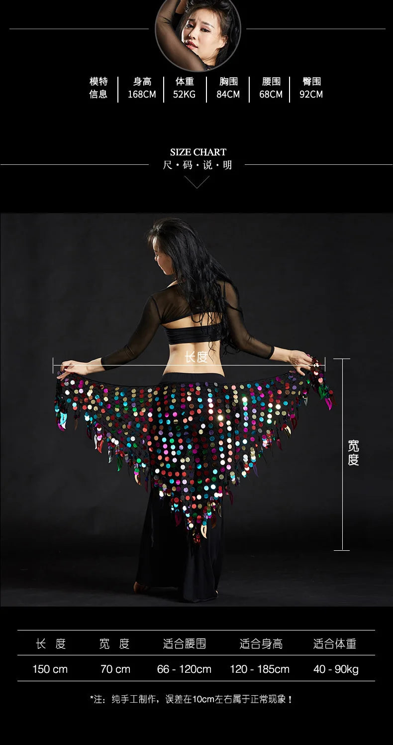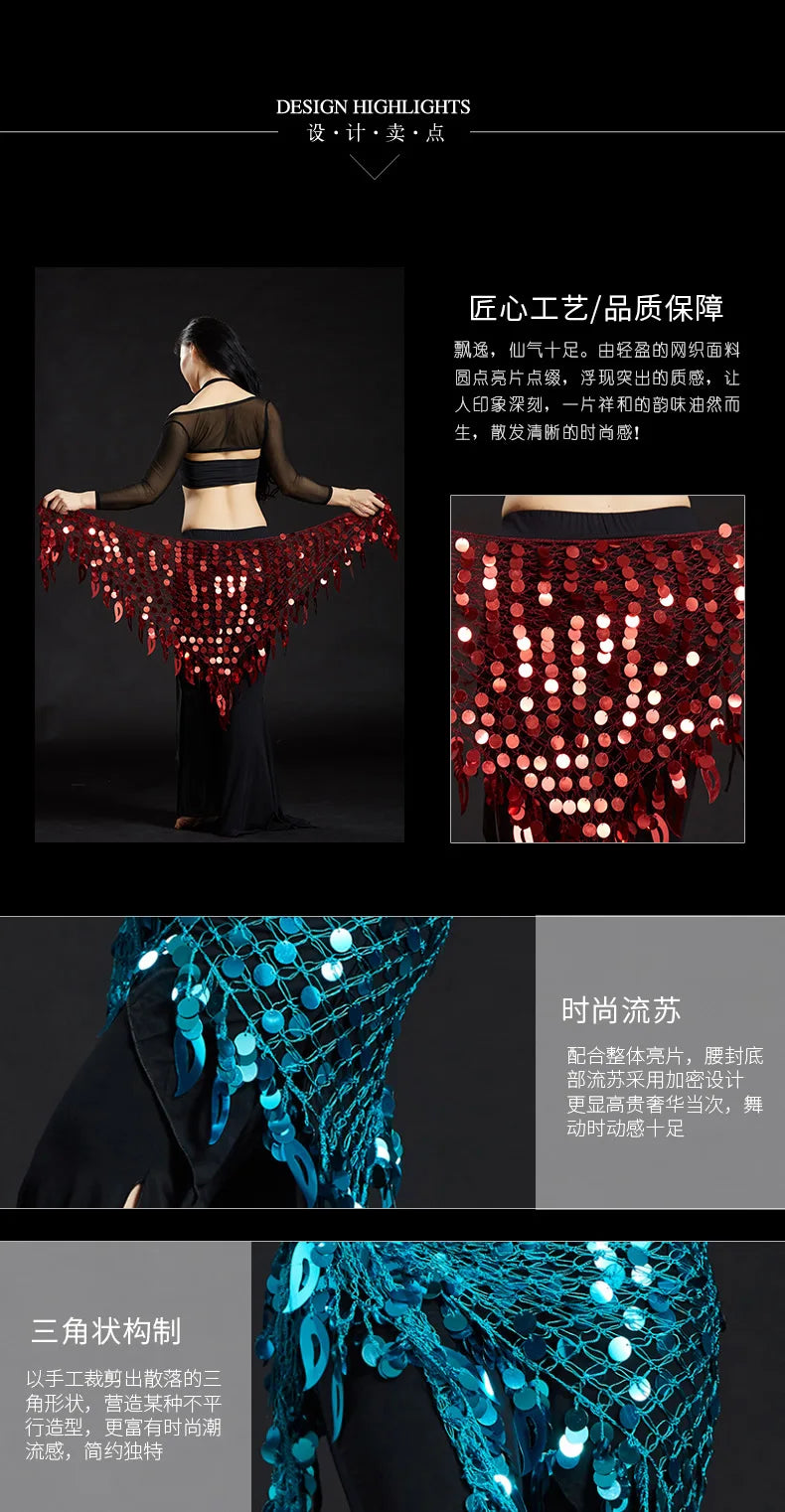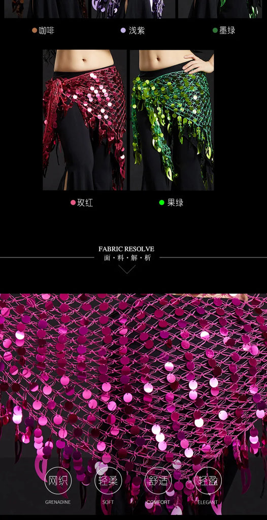 Belly Dance Hip Scarf with Sequins - New Style Costume Belt for Women