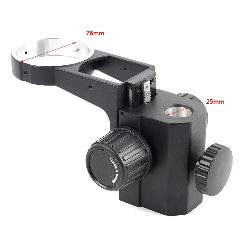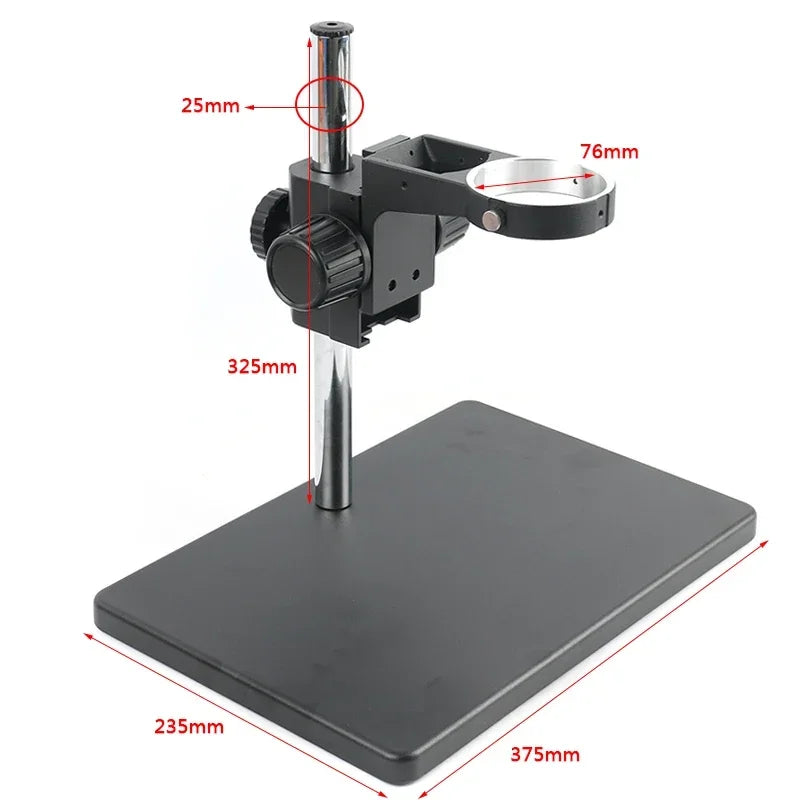 Enhance your precision work with this versatile Microscope Stand, perfect for phone repair, PCB inspection, CPU, and SMT soldering tasks. Designed to support Trinocular and Binocular Stereo Microscopes, this robust stand features a substantial base and adjustable focusing bracket for stability and accuracy. Its steel rail rack focusing mechanism and large-sized knobs ensure easy and precise adjustments. The stand is compatible with microscope heads of 76mm diameter and features a sturdy 25mm connecting pillar. Ideal for detailed work, it offers reliable support and flexibility.