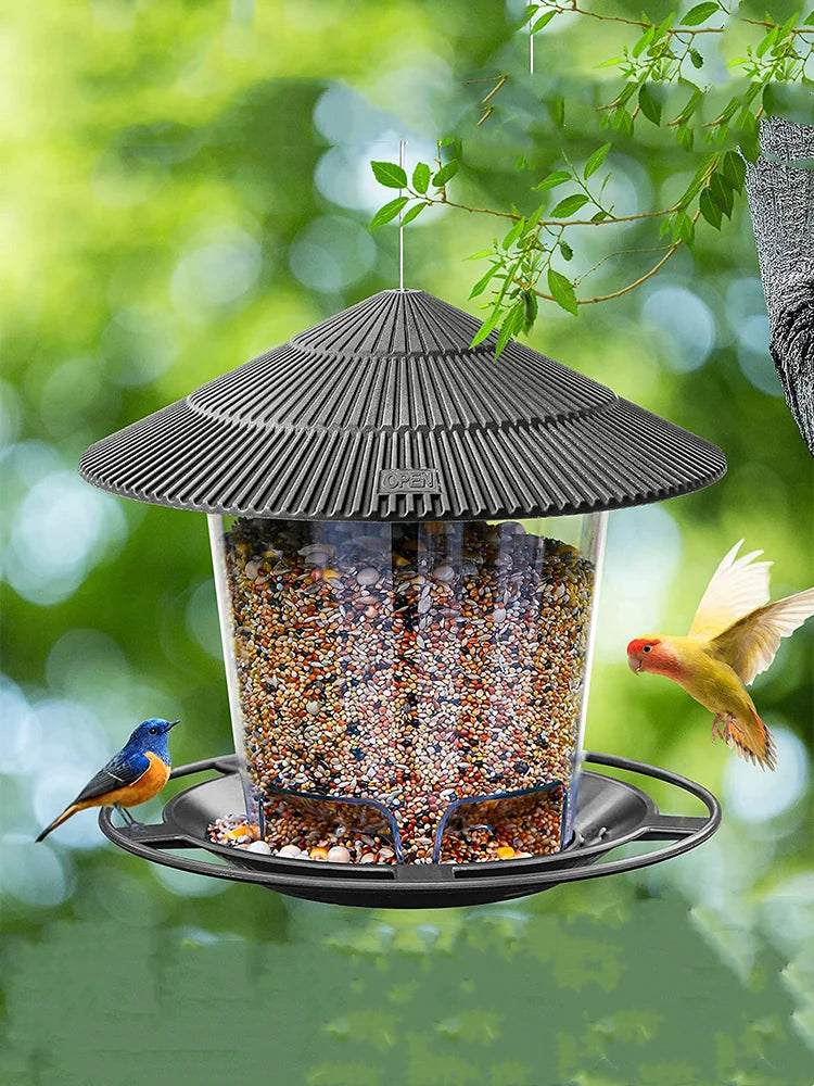 Transform your garden into a birdwatcher's paradise with our squirrel-proof bird feeder, designed to attract a diverse array of birds and bring vibrant life to your backyard. Simply fill it with your favorite bird seeds like sunflower or safflower, and enjoy the lively avian activity.