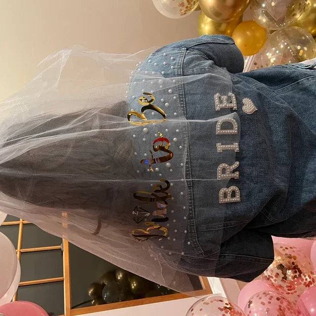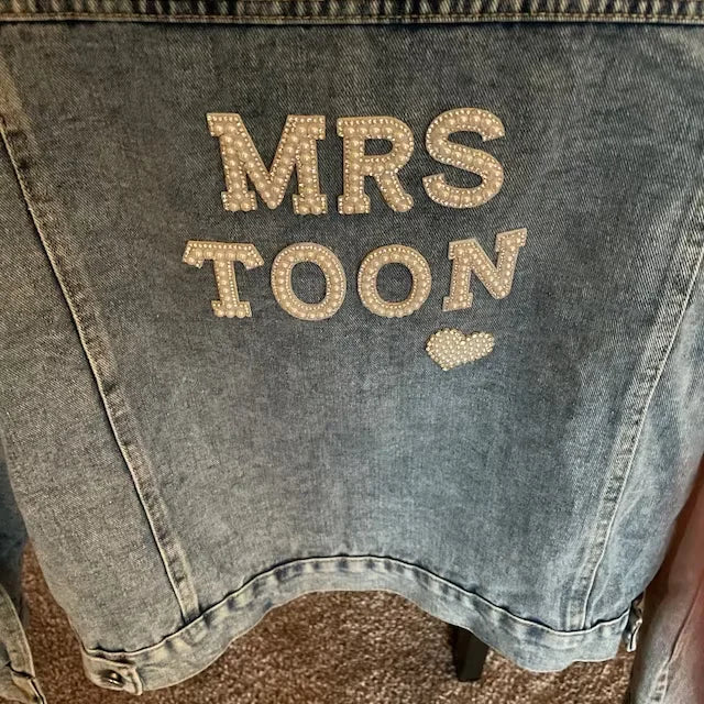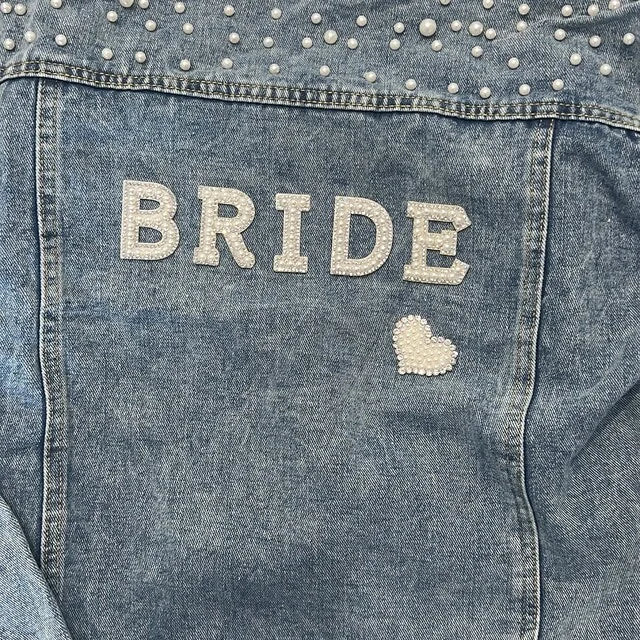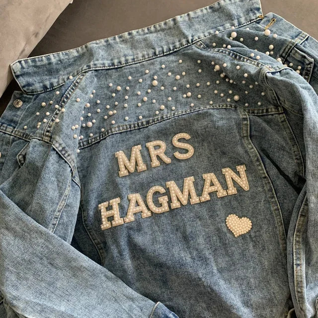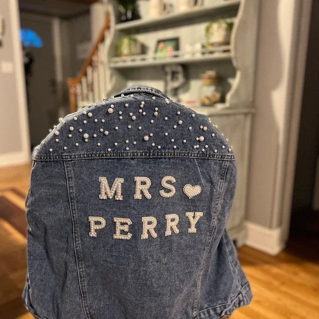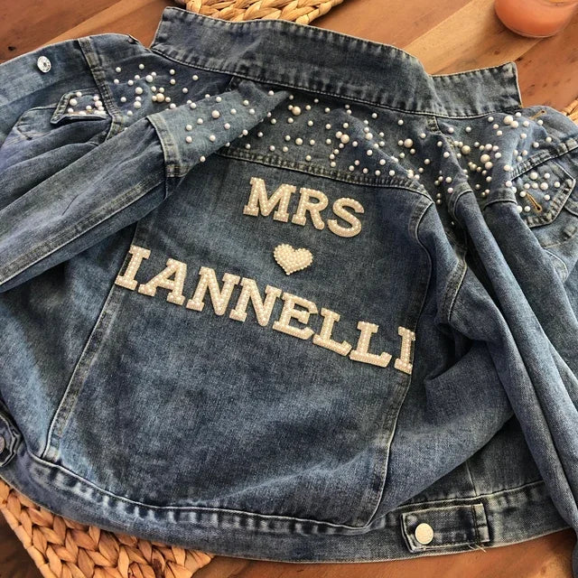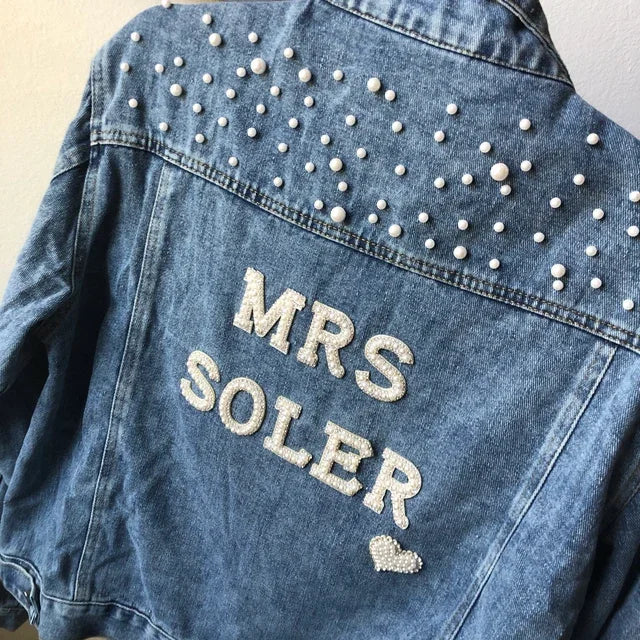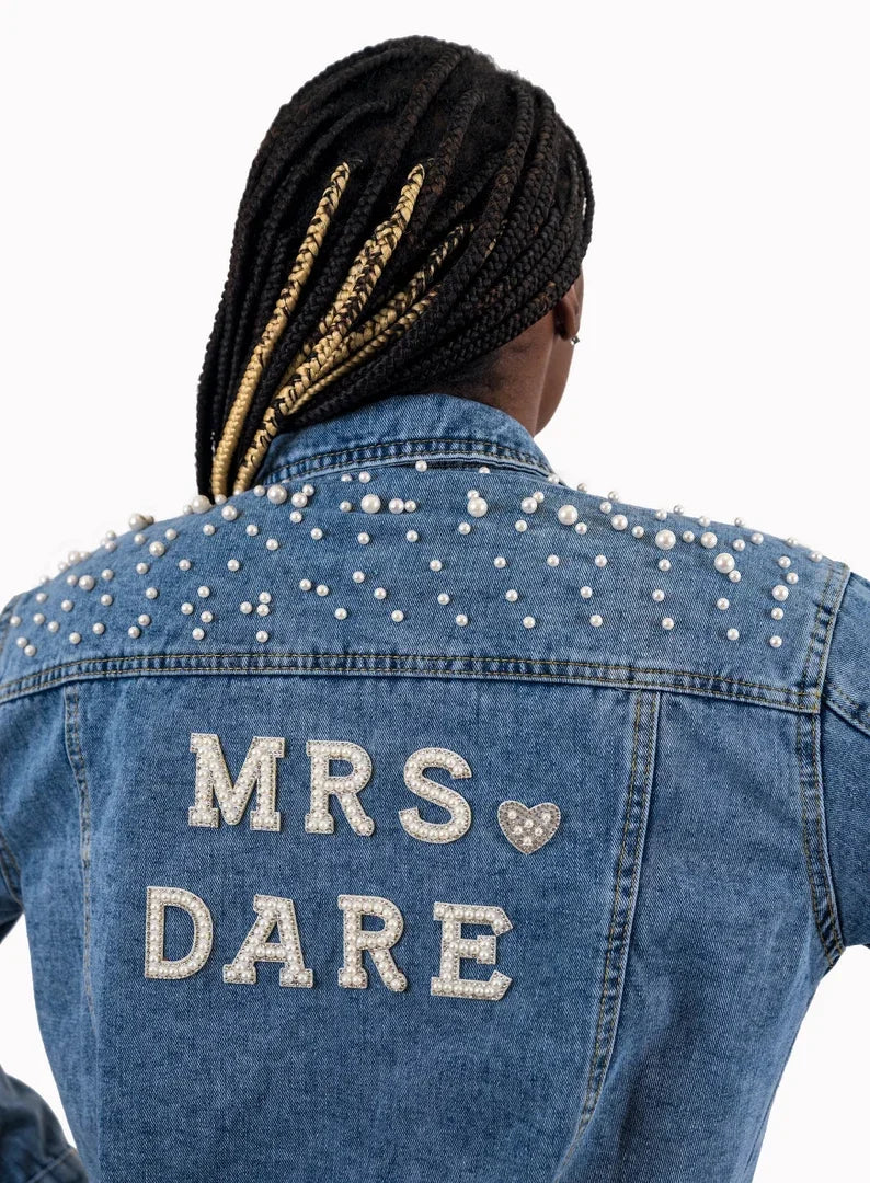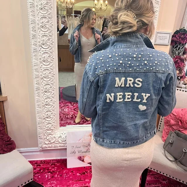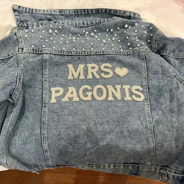 Custom Bridal Denim Jacket with Rhinestones & Pearls - Personalized Future Mrs/Wifey Wedding Coat