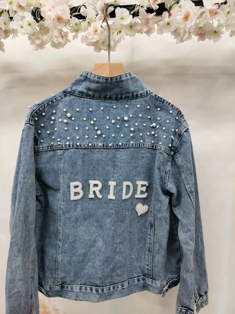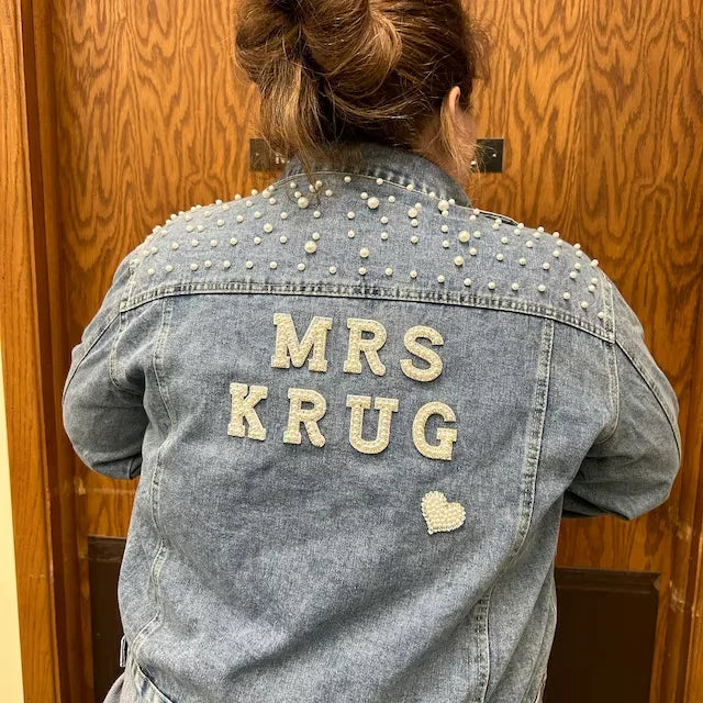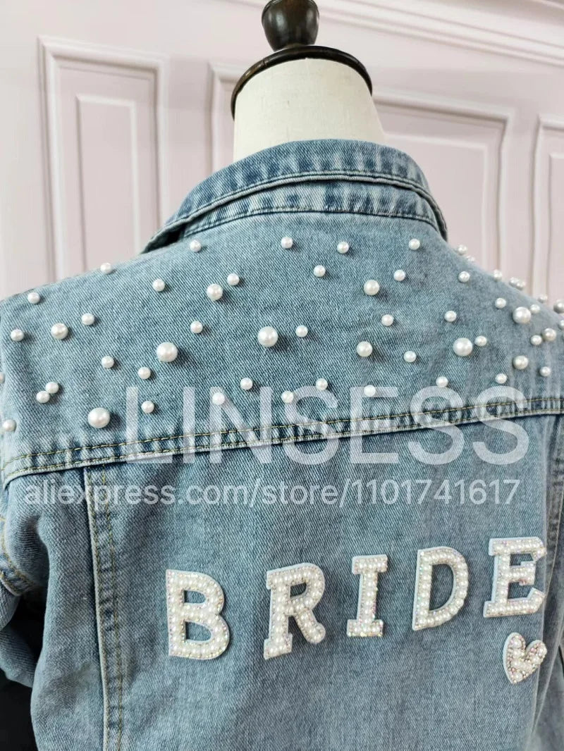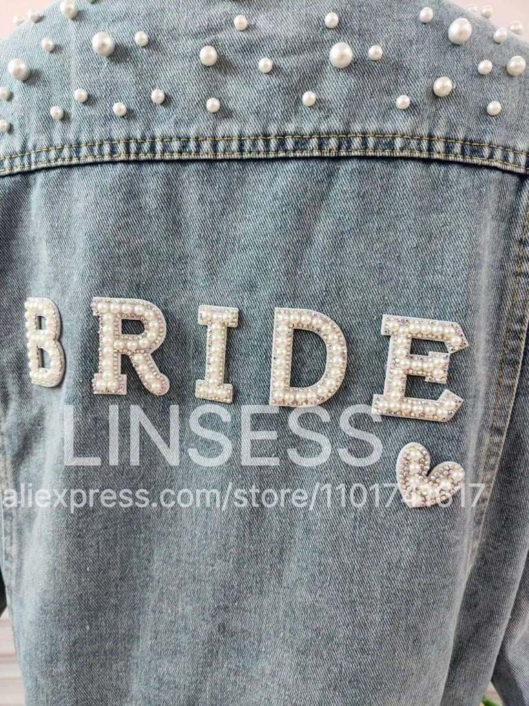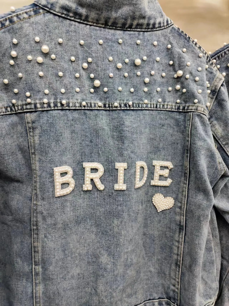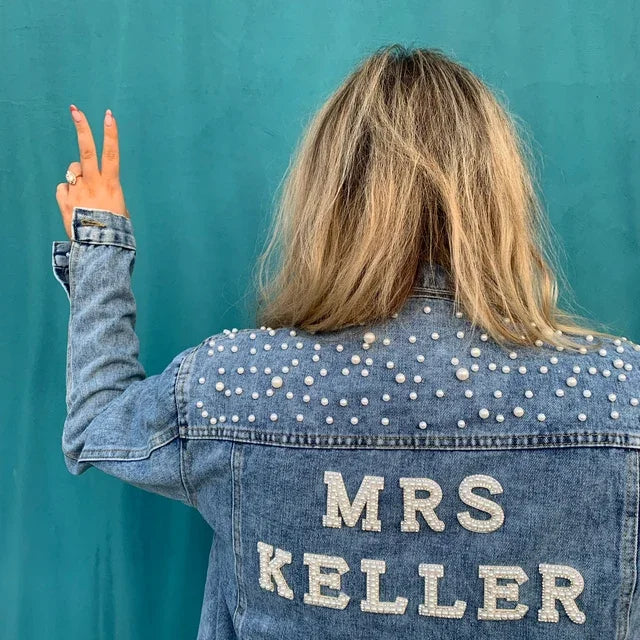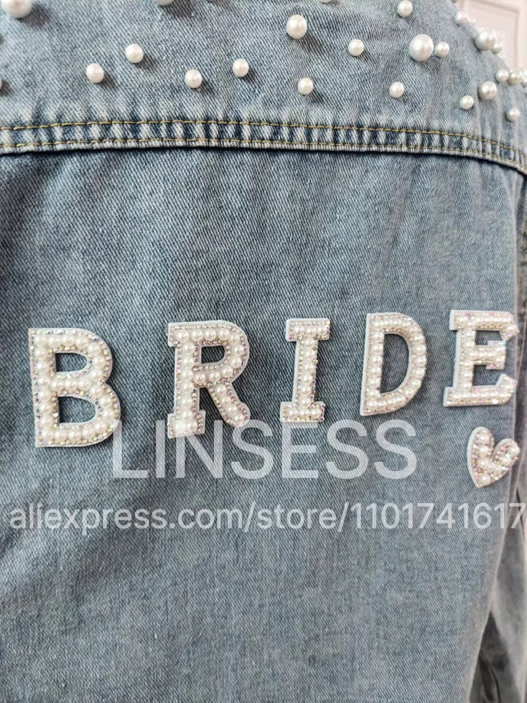 Custom Bridal Denim Jacket with Rhinestones & Pearls - Personalized Future Mrs/Wifey Wedding Coat