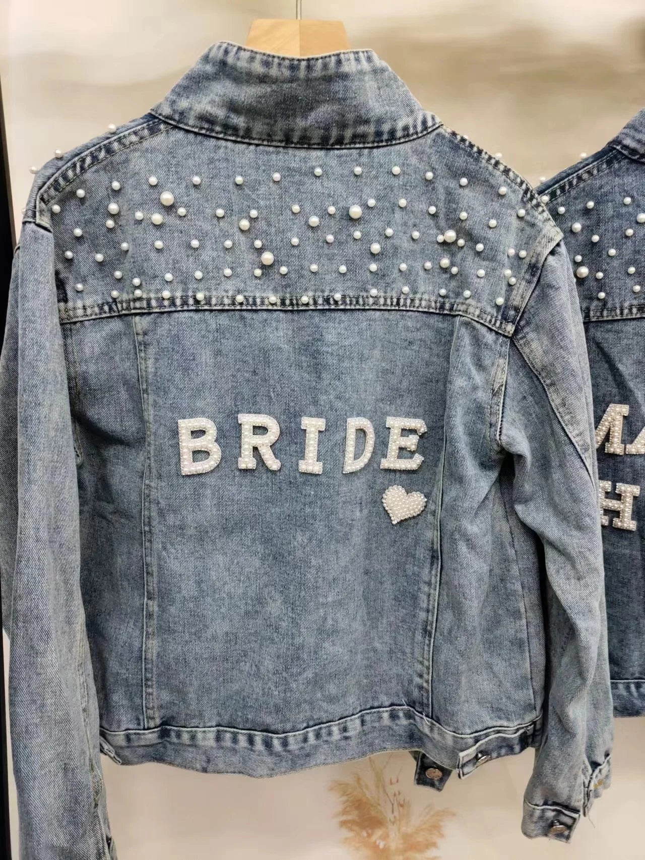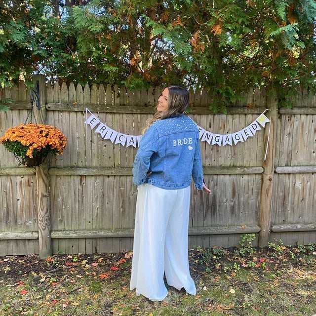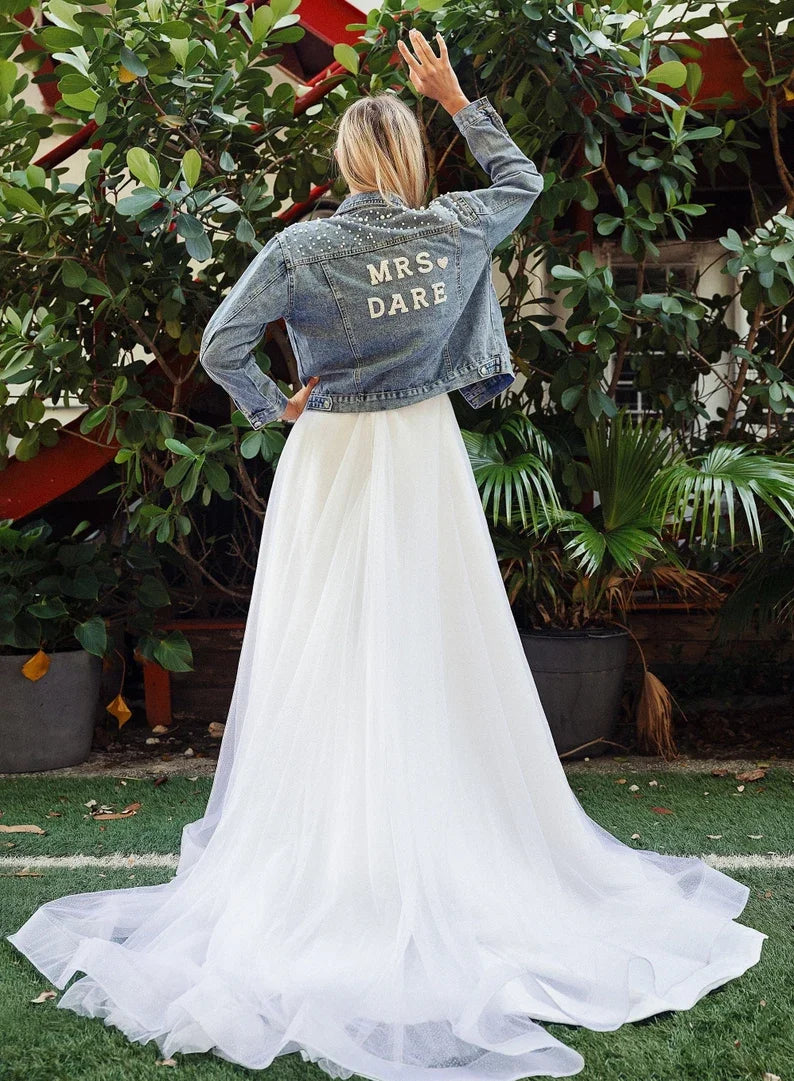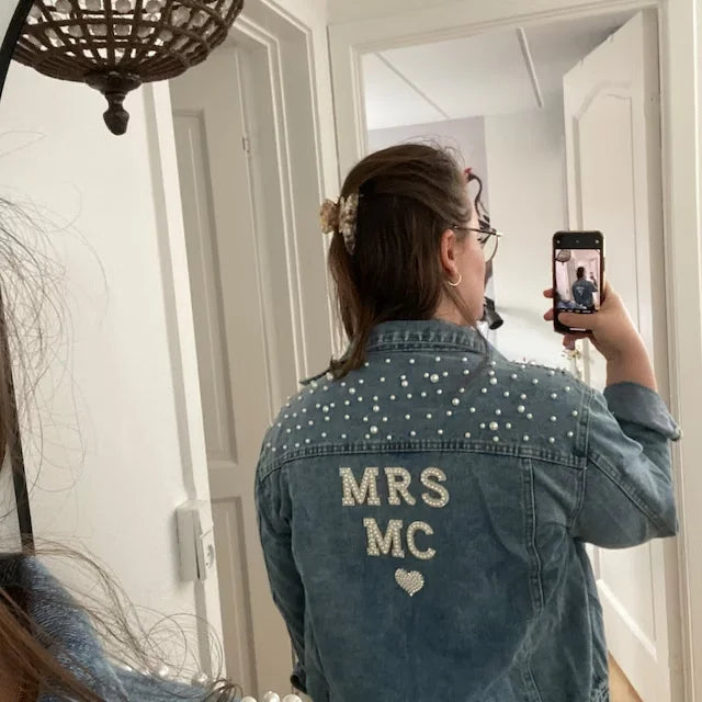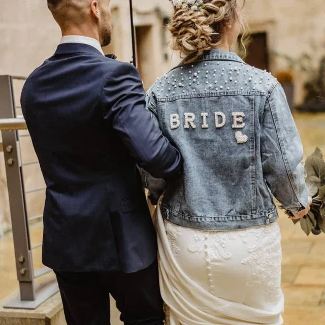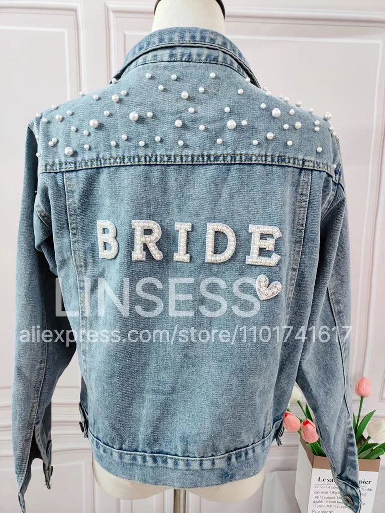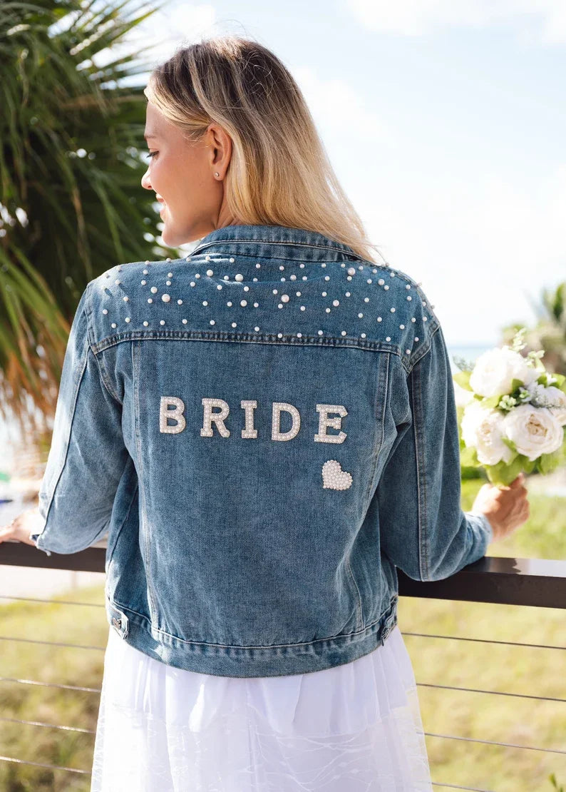 Custom Bridal Denim Jacket with Rhinestones & Pearls - Personalized Future Mrs/Wifey Wedding Coat