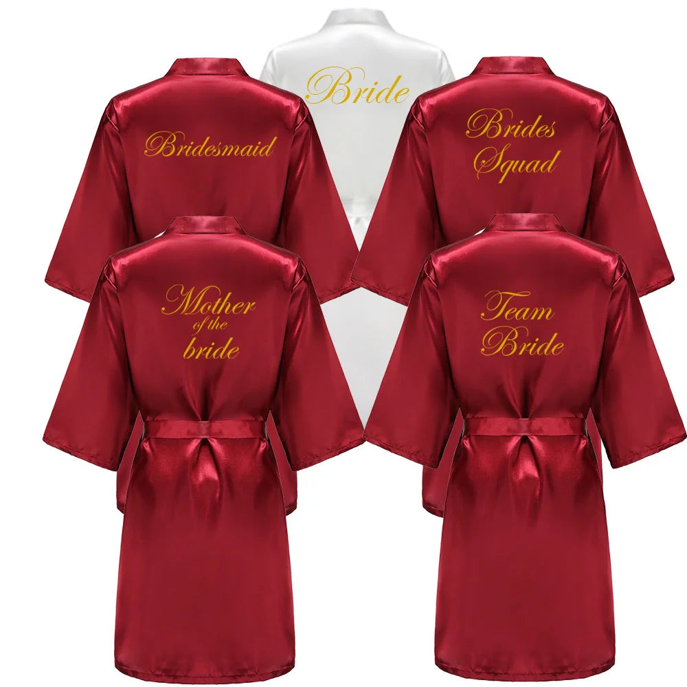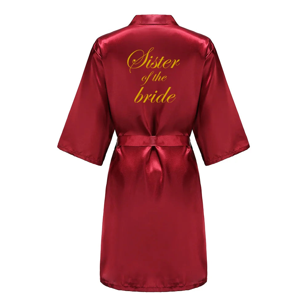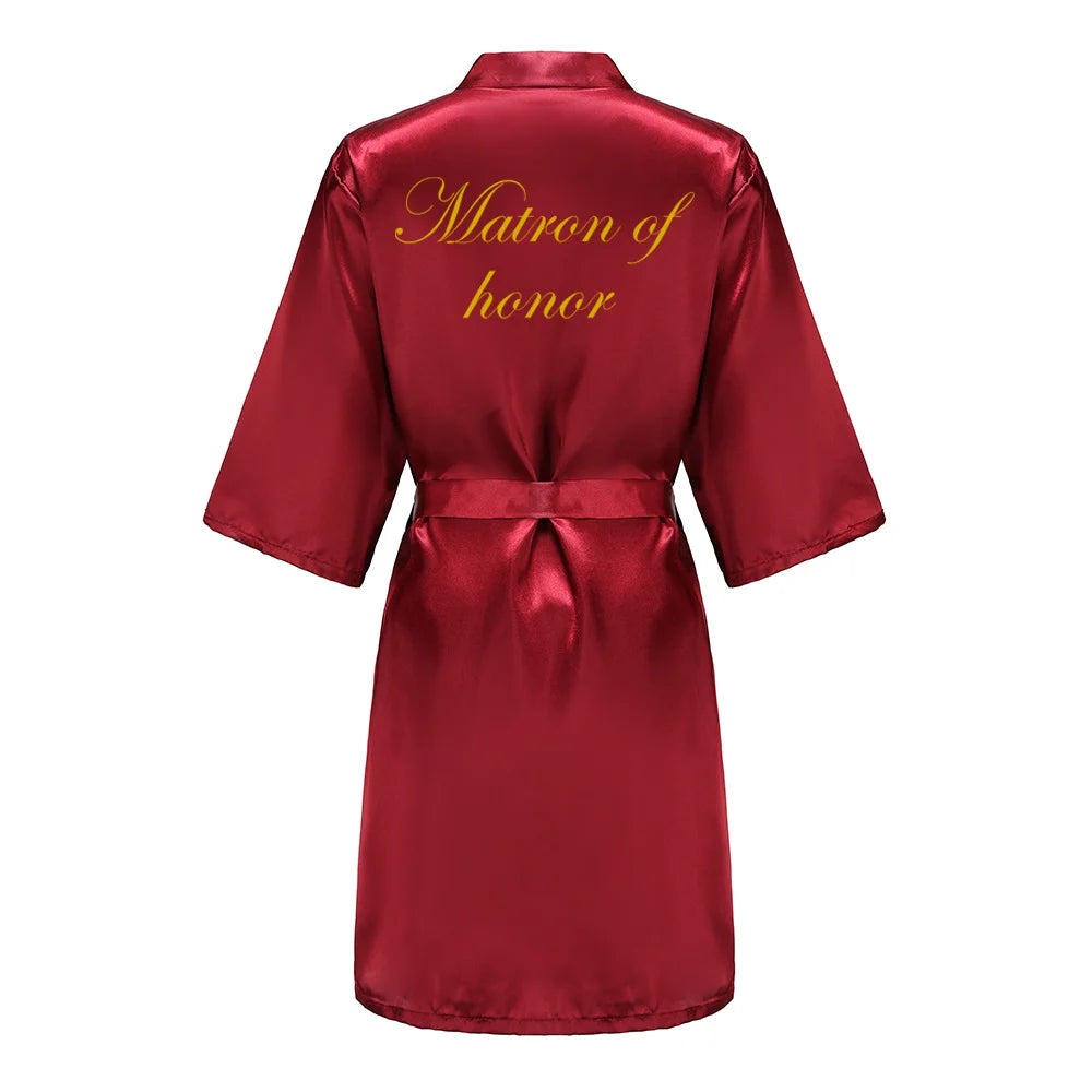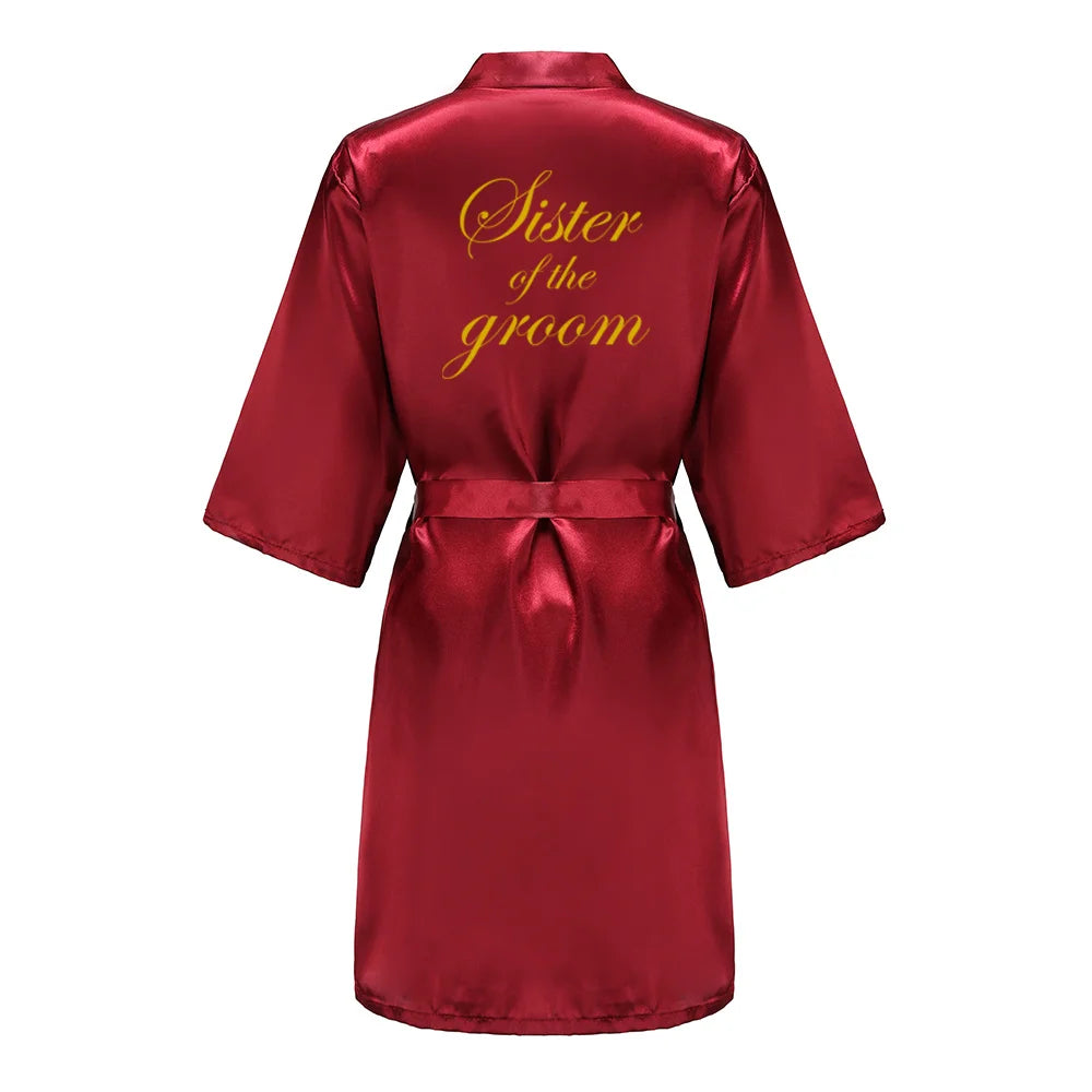 Burgundy Satin Kimono Robe for Women - Bridesmaid, Sister, Mother of Bride/Groom Wedding Robe with Gold Lettering