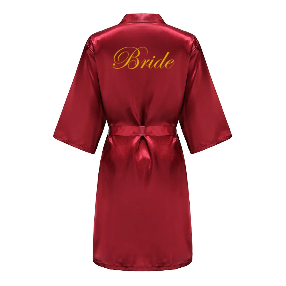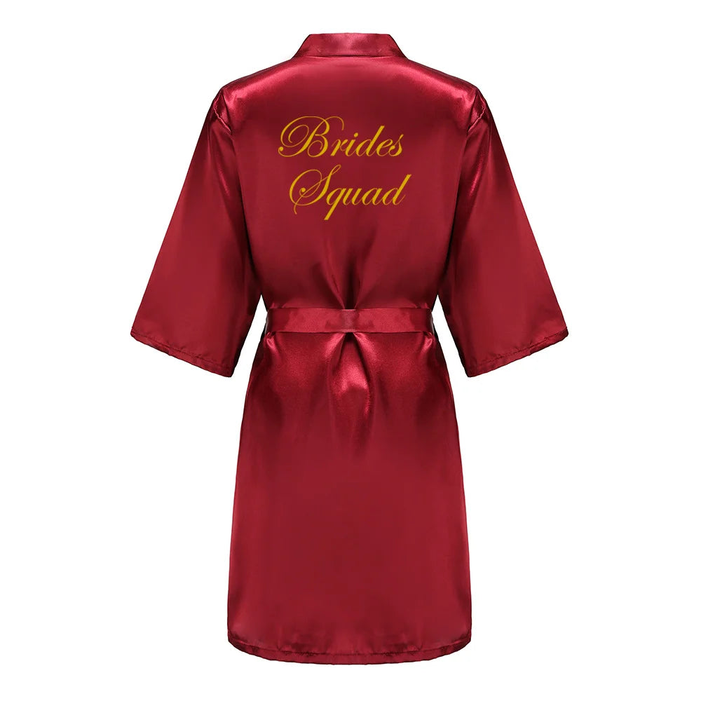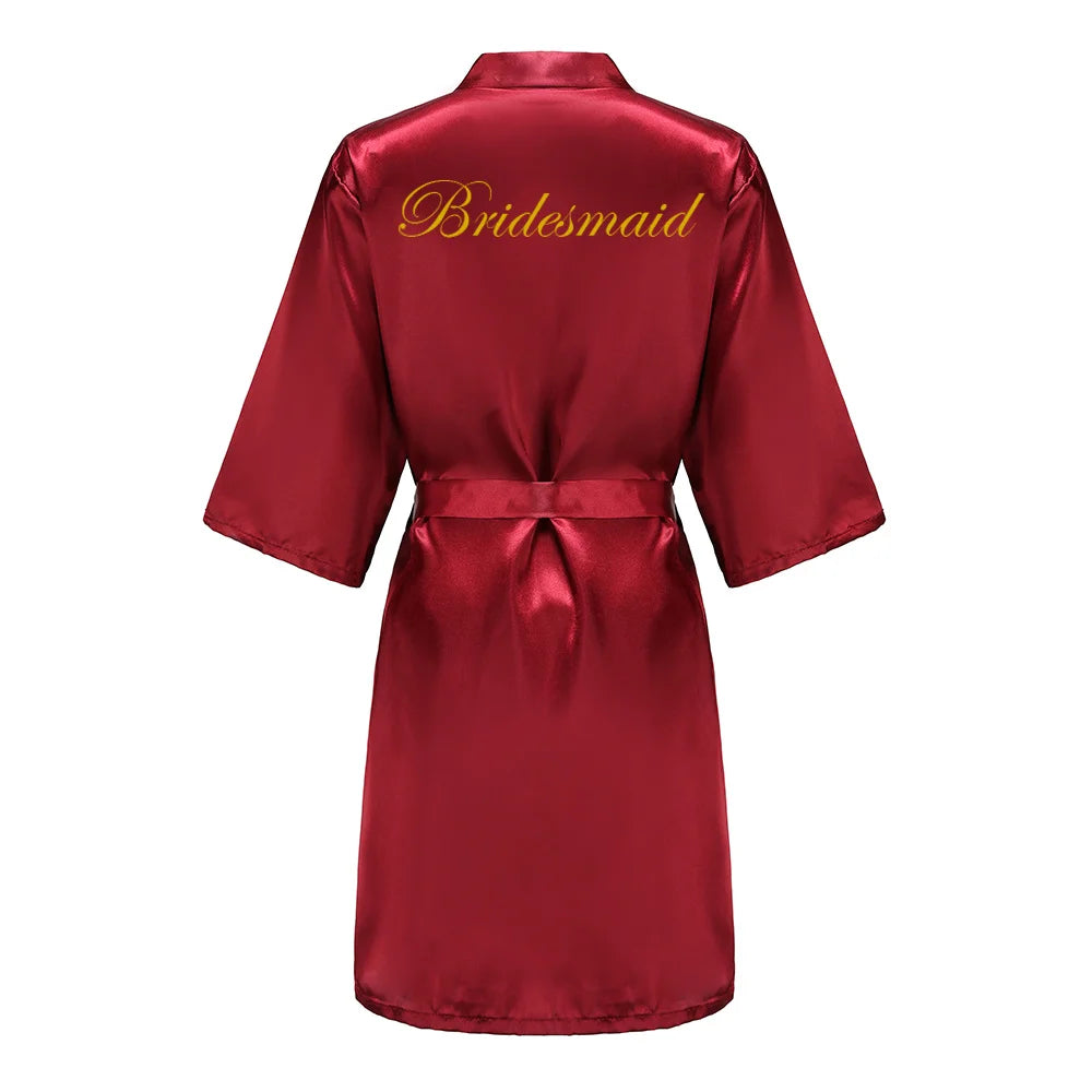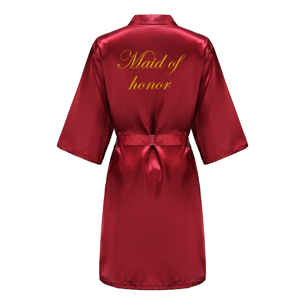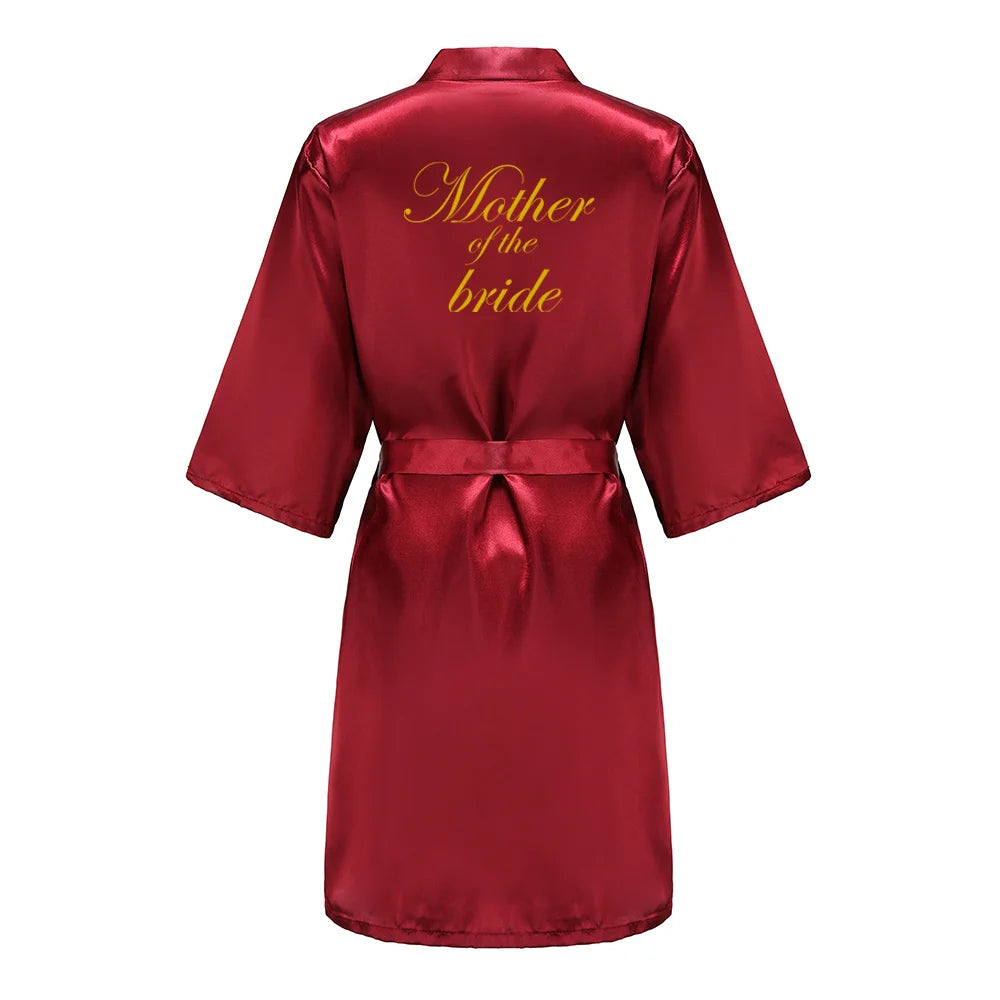 Burgundy Satin Kimono Robe for Women - Bridesmaid, Sister, Mother of Bride/Groom Wedding Robe with Gold Lettering