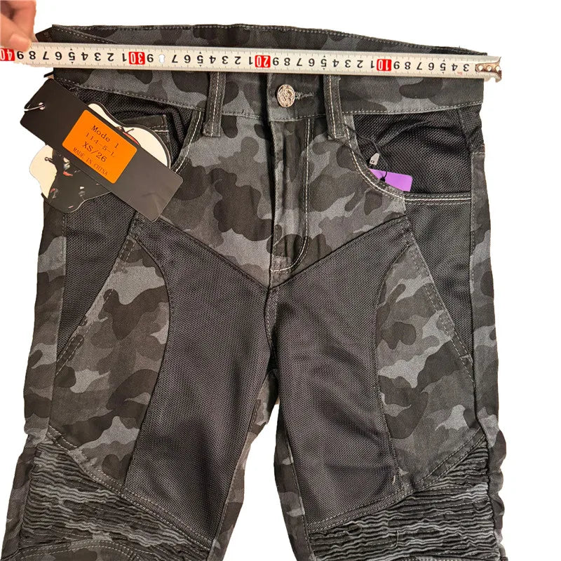 Camo Denim Motorcycle Pants Women’s Elastic Fit Summer Riding Jeans 4 Gears Dual Spring Motocicleta Pk720
