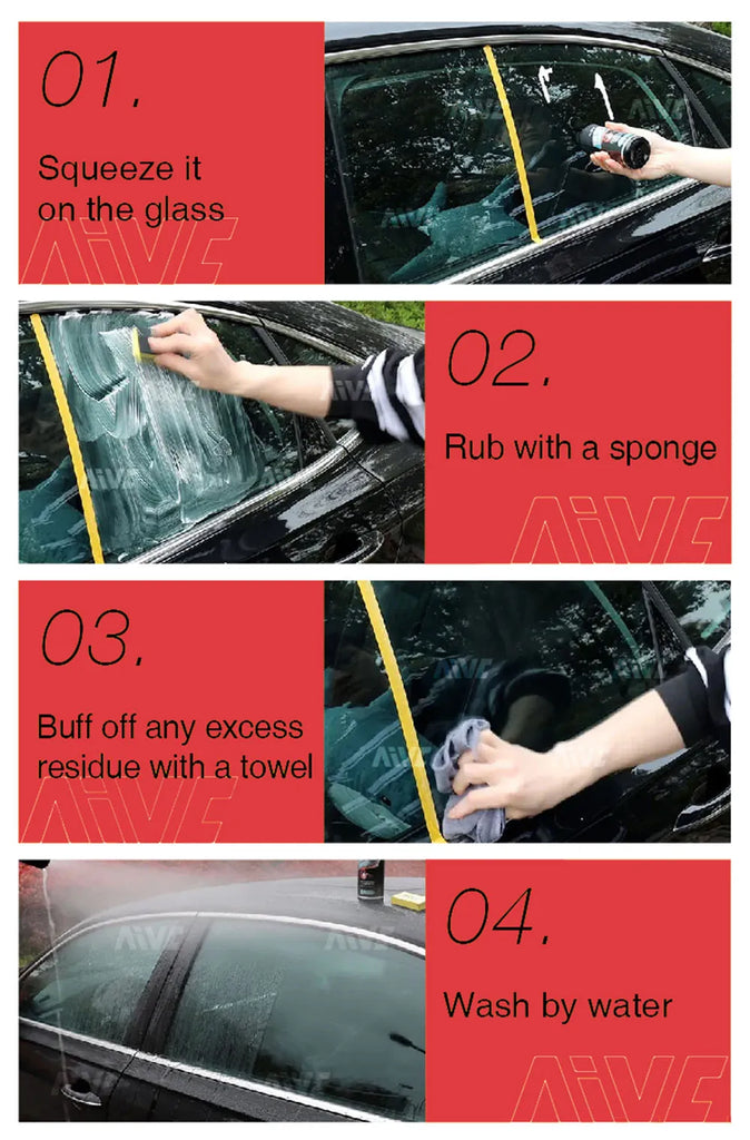 - Easy Application: Simply clean the glass, apply the cream with a sponge, scrub, and rinse.