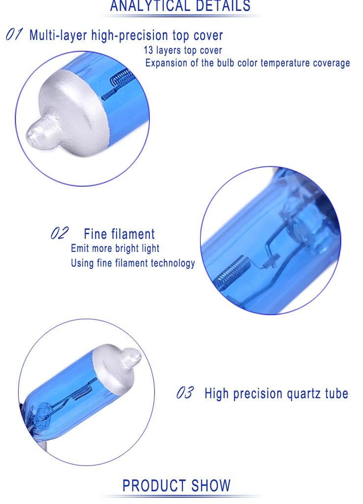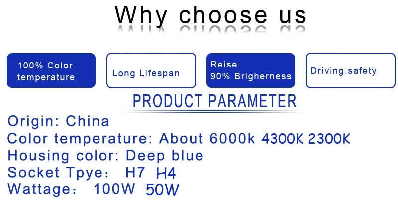 Introducing our premium halogen car headlights, designed to deliver exceptional brightness and clarity for safer driving. These H7 halogen bulbs provide a brilliant super white illumination with a color temperature ranging from 2300K to 6000K. Operating at 12V with options for 55W or 100W power, they ensure optimal performance in all conditions.