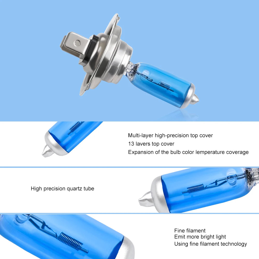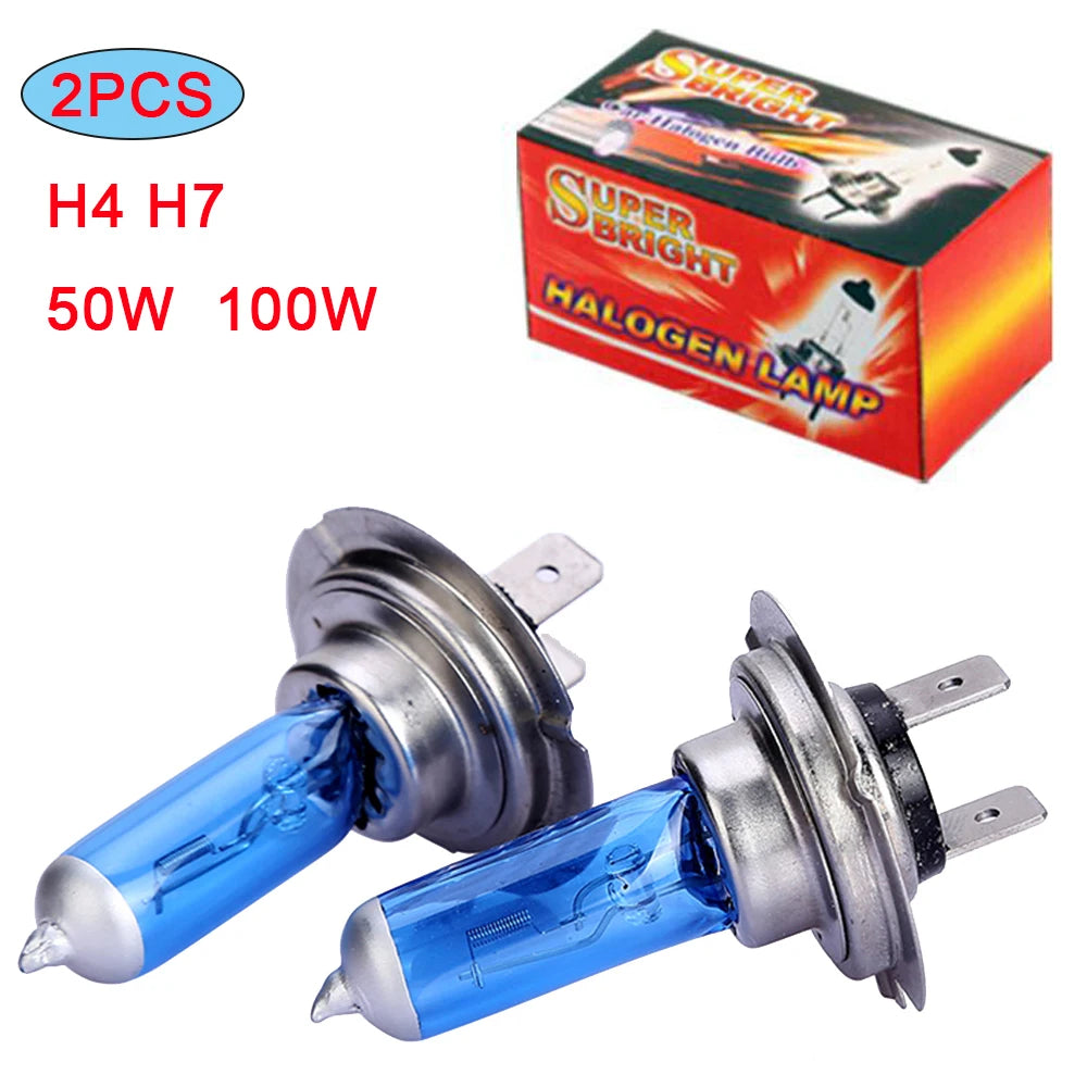 Car Halogen Headlight Bulbs 6000k 4300k 2300k 12V H7 H4 50W 100W Super White Auto Lamps 2pcs