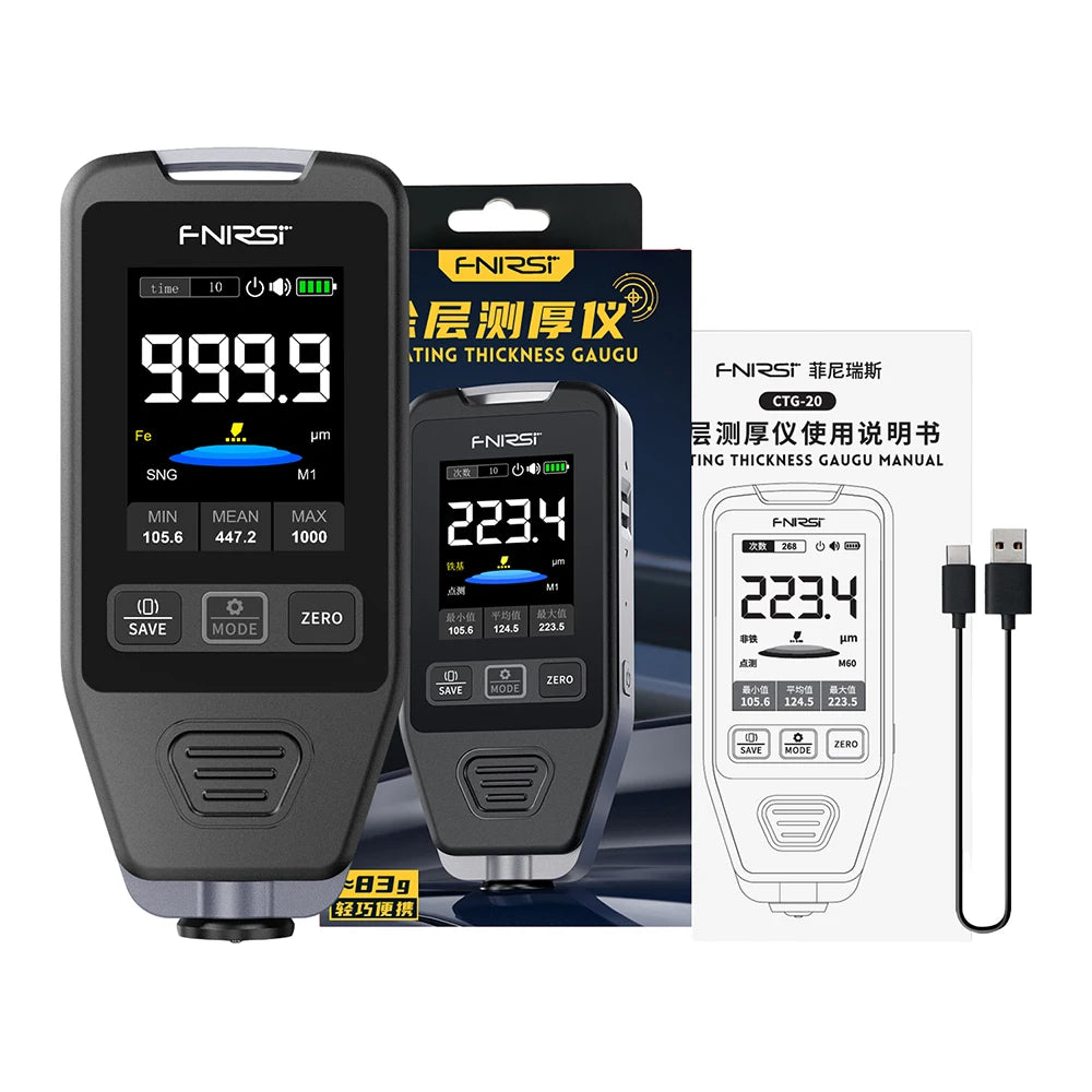 Car Paint Thickness Gauge Metal Coating 0-1400um Fe/NFe/Fe+Zn Electroplate Putty Gauge CTG-20