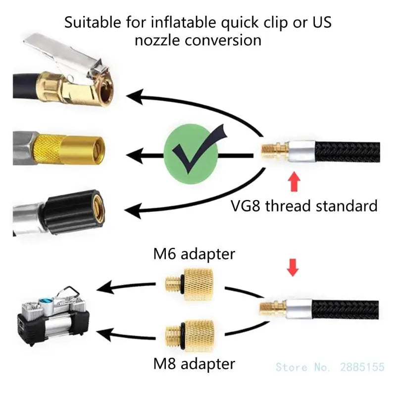 Car Tire Air Compressor Pump Hose with Adaptors | Inflator Extension Replacement Tube