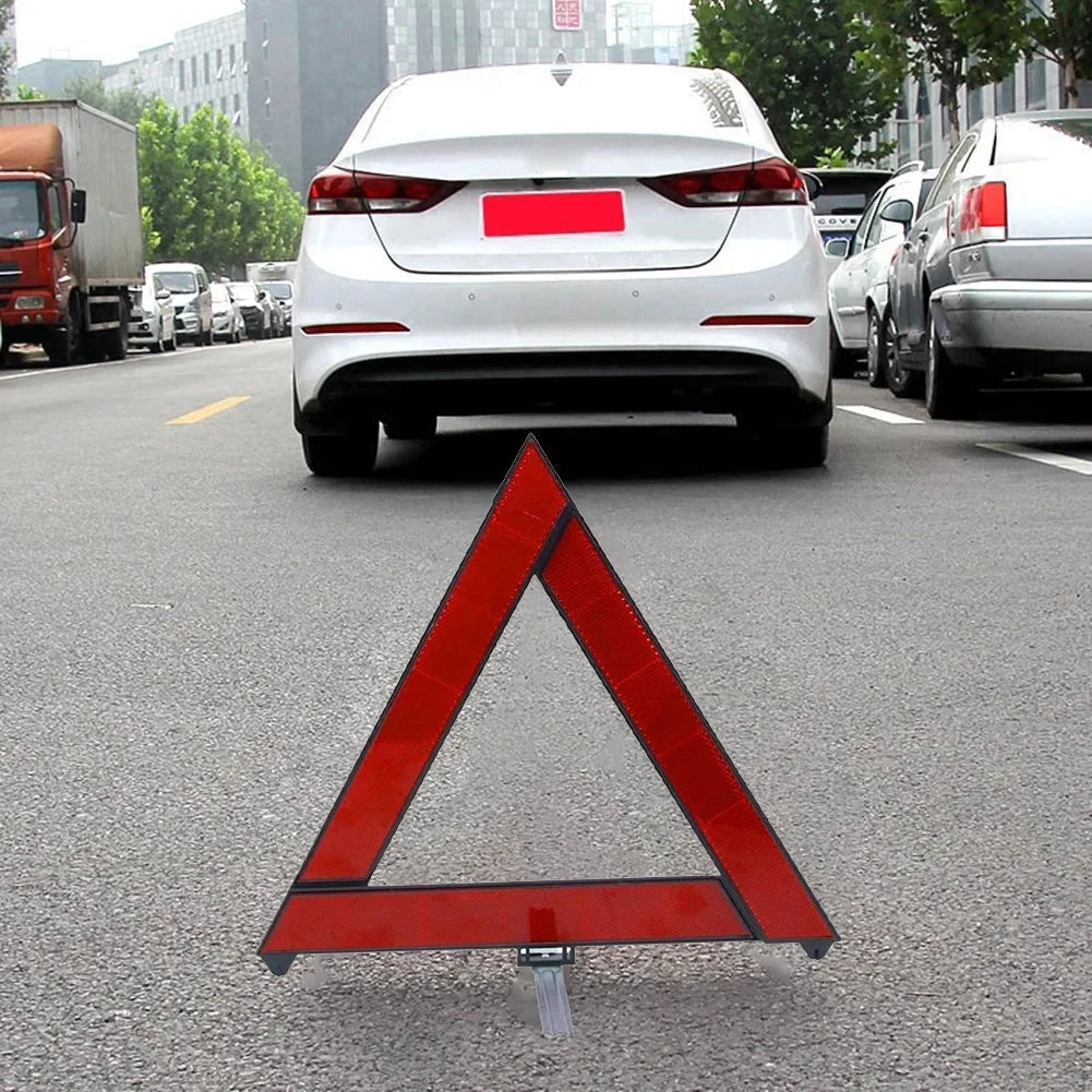 Emergency Reflective Warning Triangle Foldable for Car Safety - Red Hazard Tripod