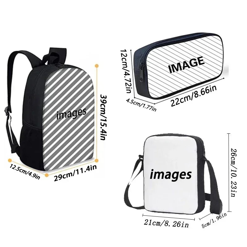 Introducing a charming 3-piece backpack set perfect for those who love functionality with a touch of fun. This softback set features an adorable cartoon design, making it an excellent choice for both kids and adults.