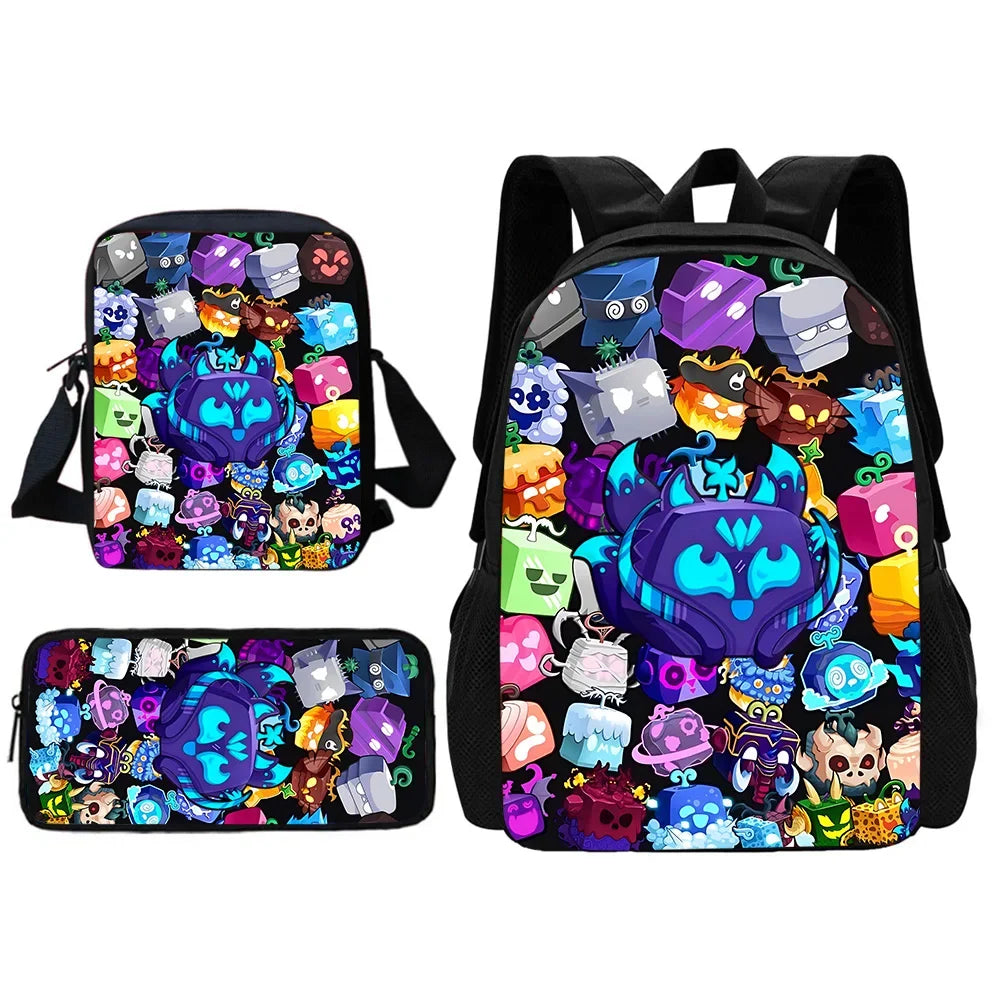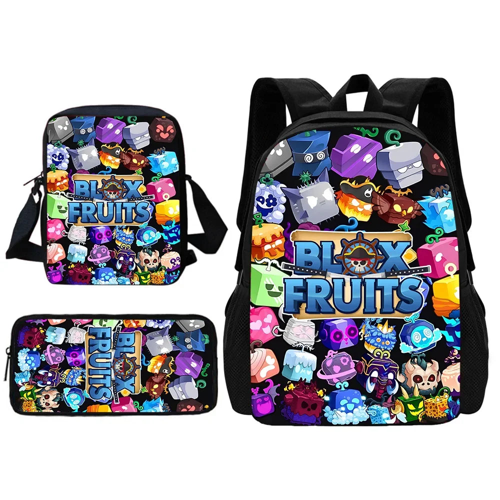 Cartoon Blox Fruits Kids School Backpack Set: Backpack, Shoulder Bag, Pencil Case