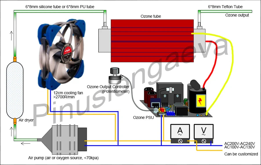 5g/h Adjustable Ozone Generator Kit with Tube Transformer PSU for Air & Water Purification