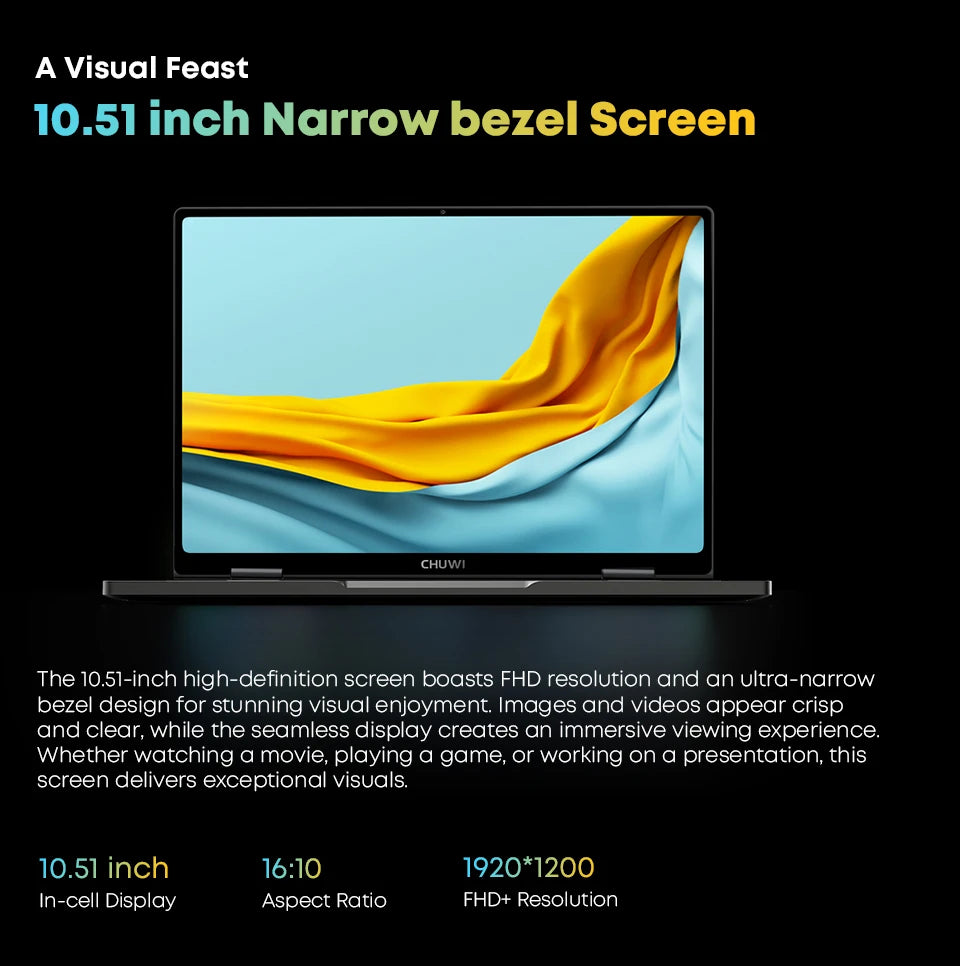 Introducing the versatile 2-in-1 MiniBook X, a compact powerhouse designed for productivity on the go. With a 10.5-inch full-screen display, this device is 20% smaller than similar models, making it perfect for travel. The MiniBook X transforms seamlessly from a laptop to a tablet with its 360° swivel design, ideal for work, play, or leisure.
