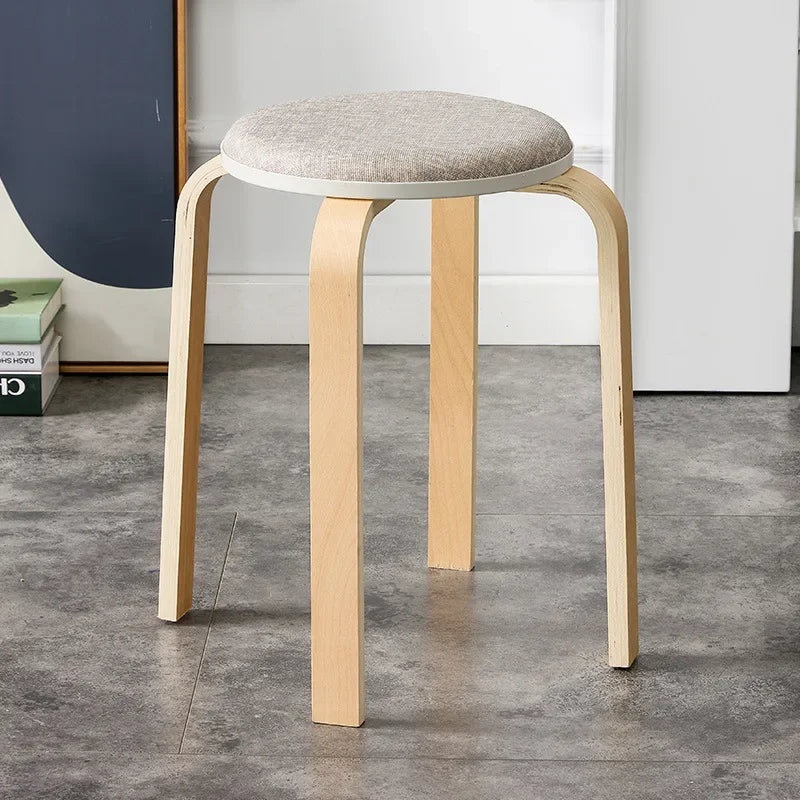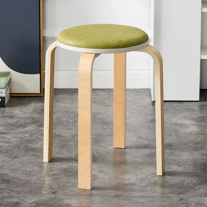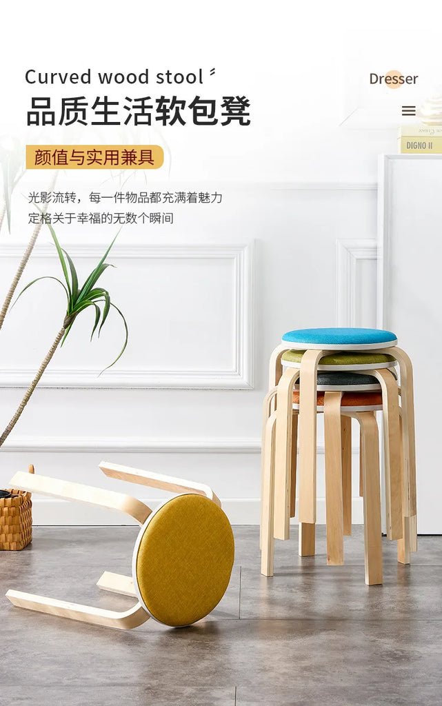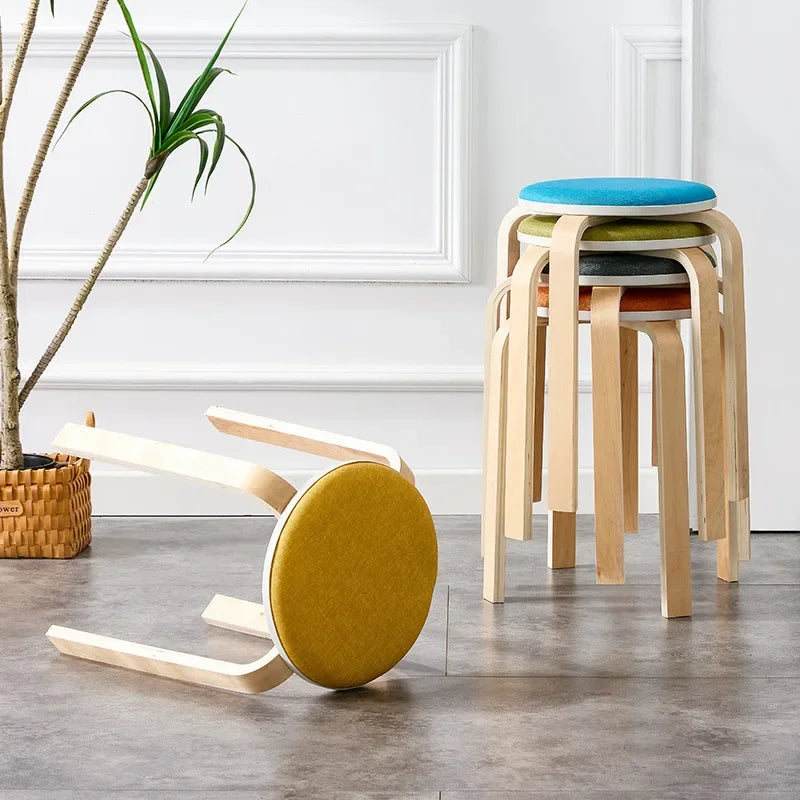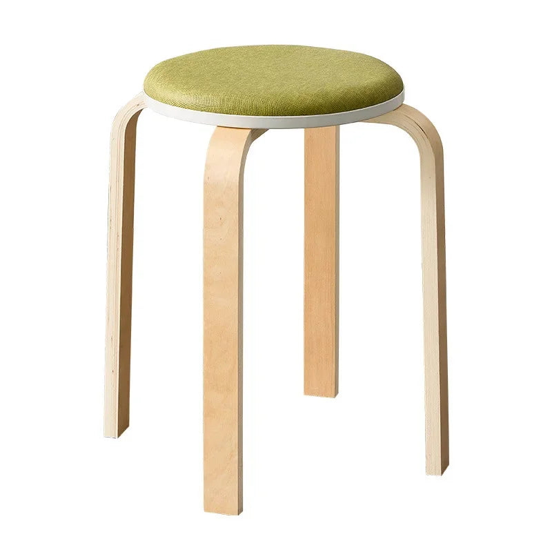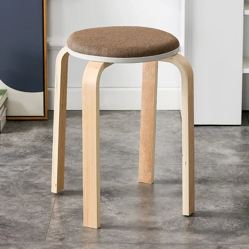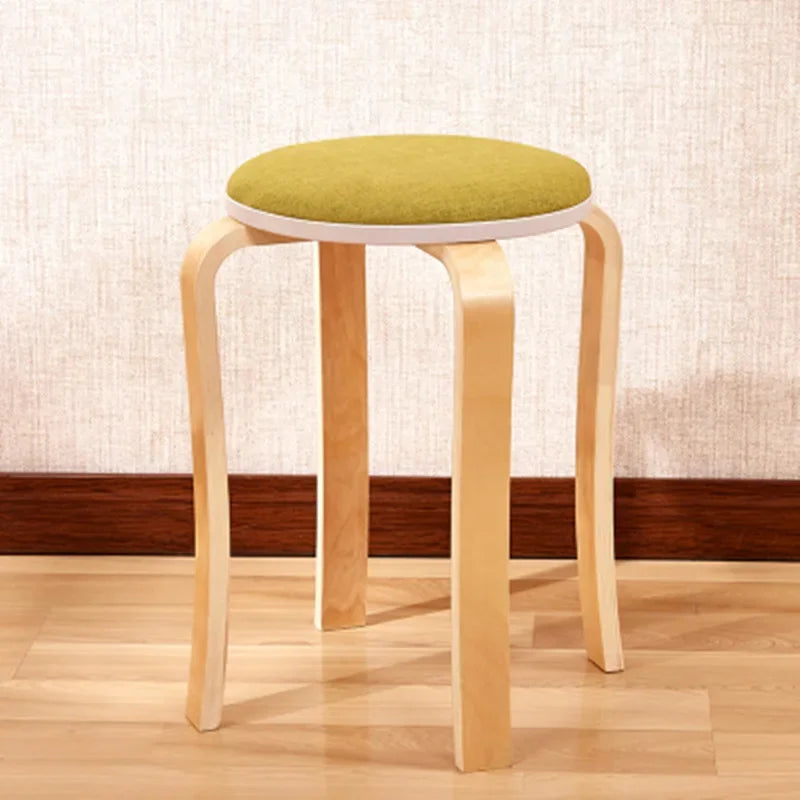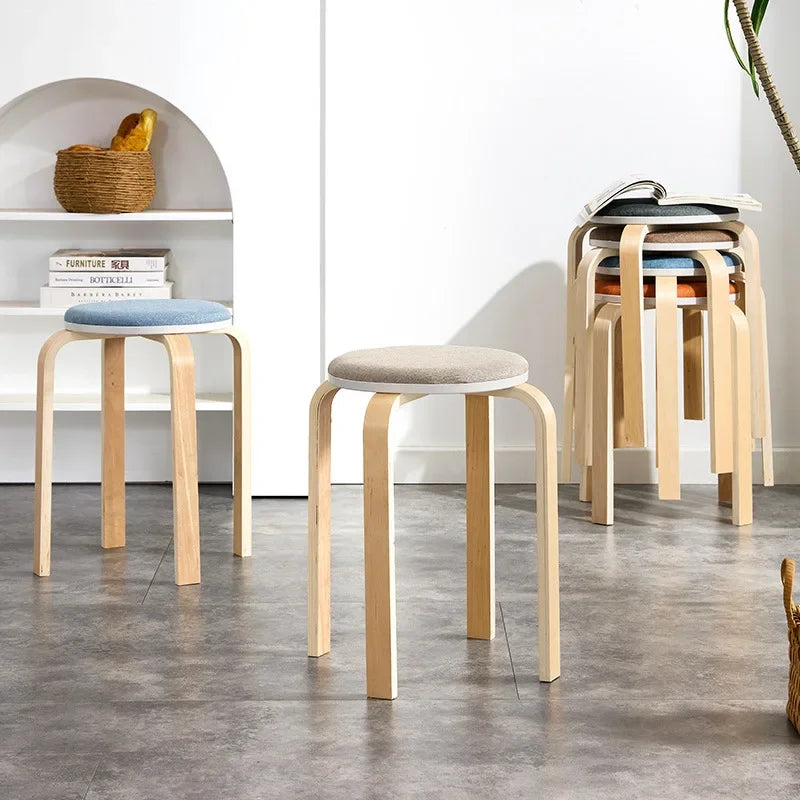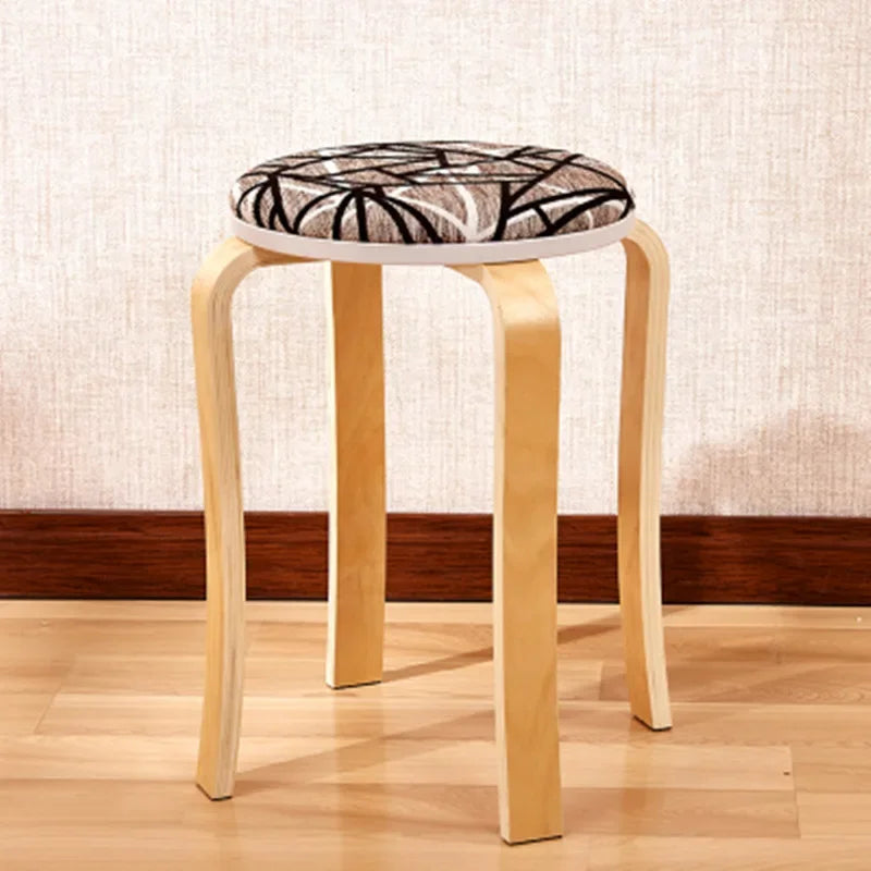 Curved Wooden Stool - High Round Dining Chair, Soft Surface Table Bench for Adults