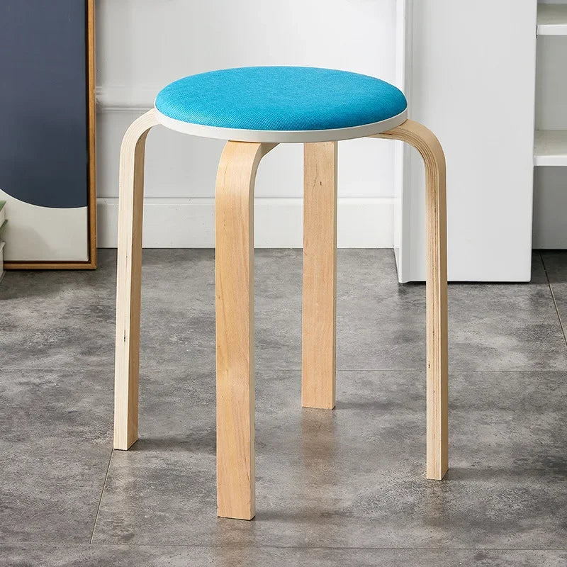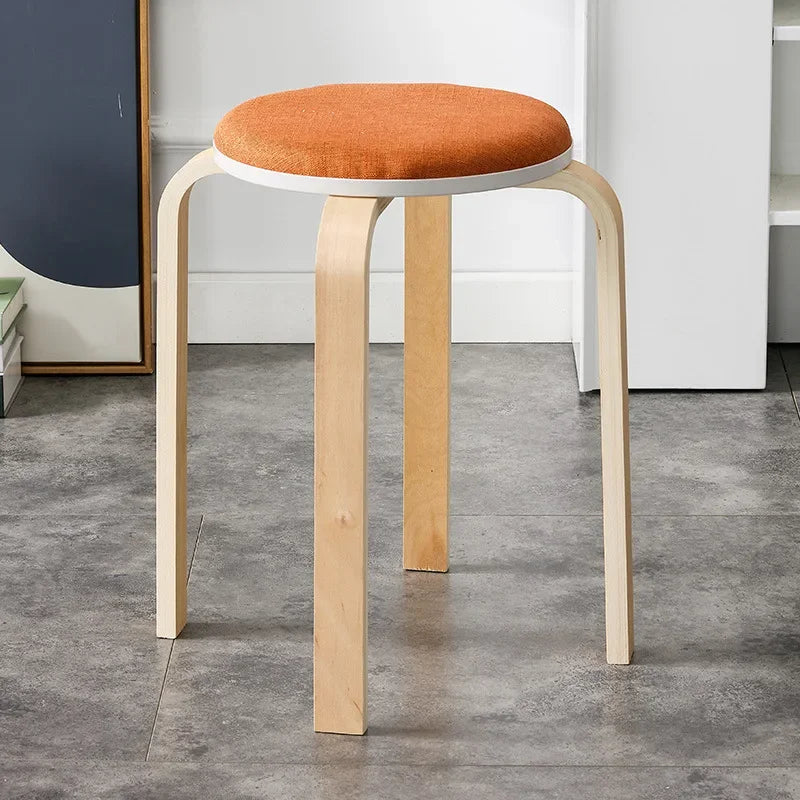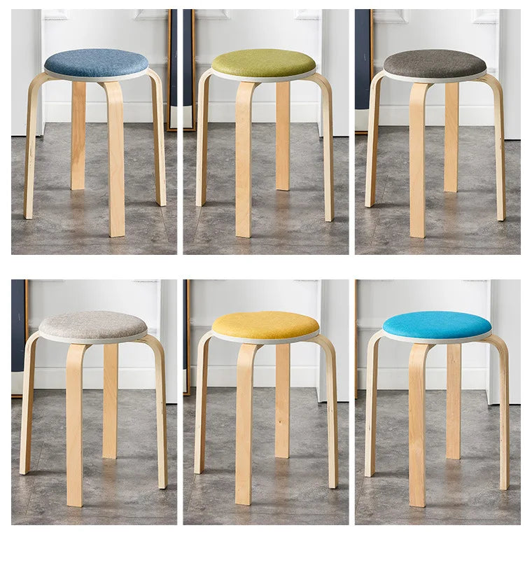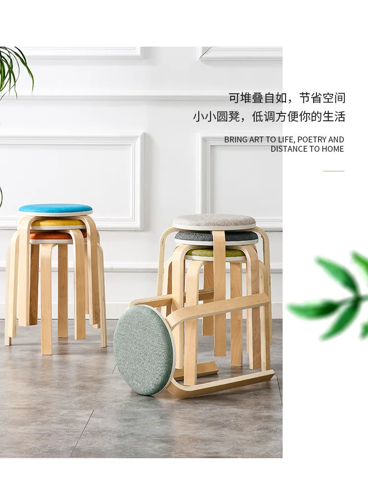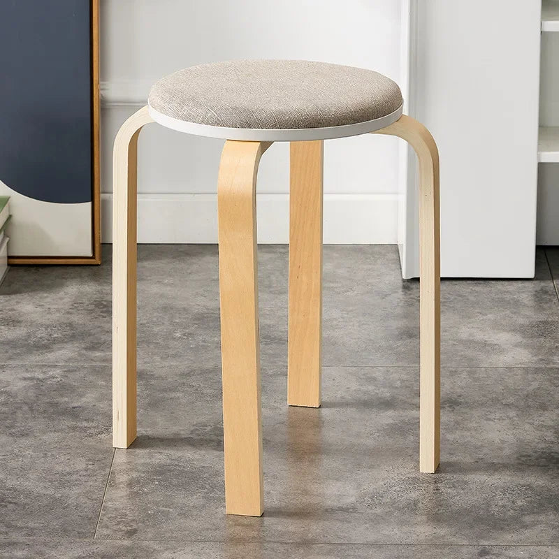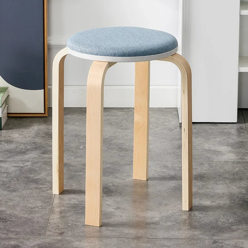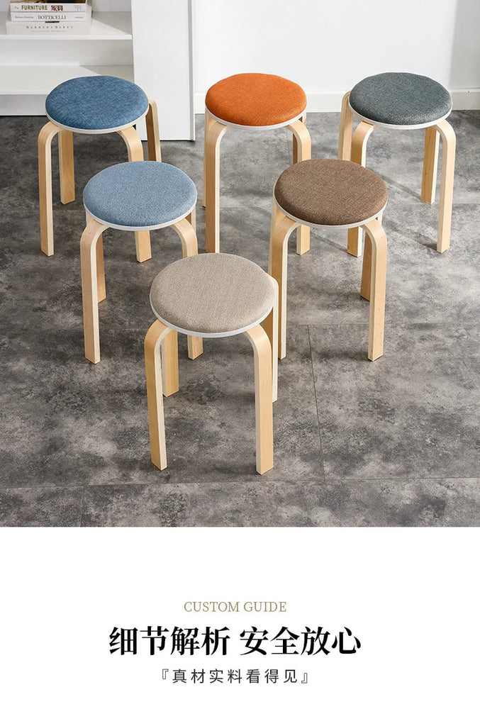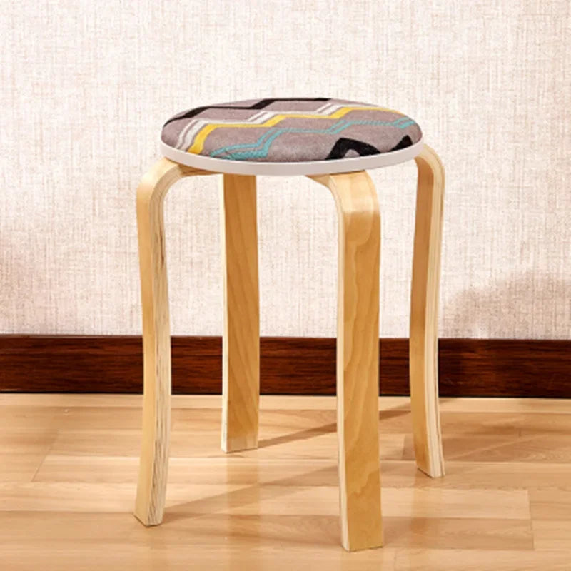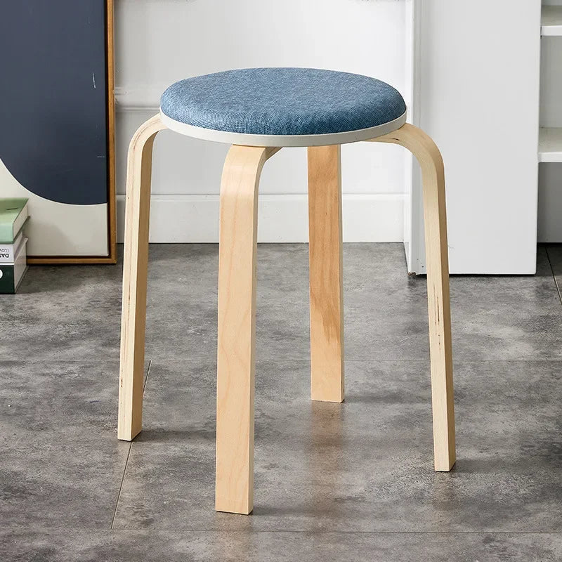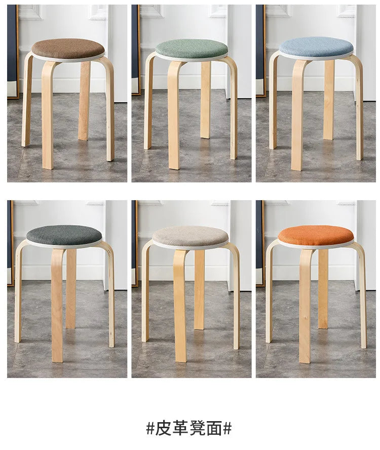 Curved Wooden Stool - High Round Dining Chair, Soft Surface Table Bench for Adults
