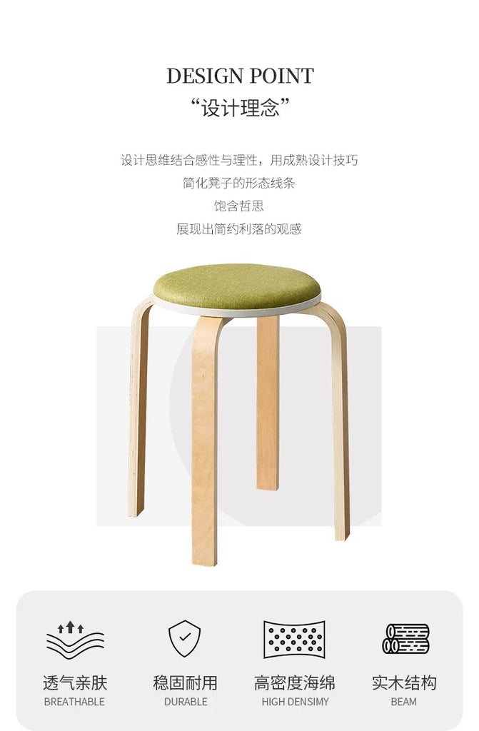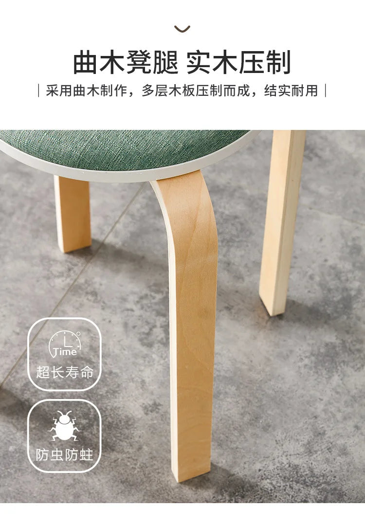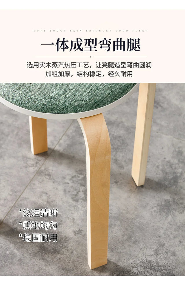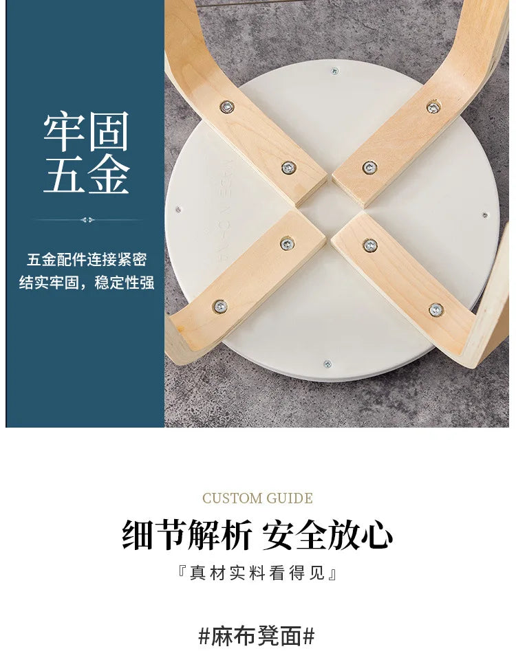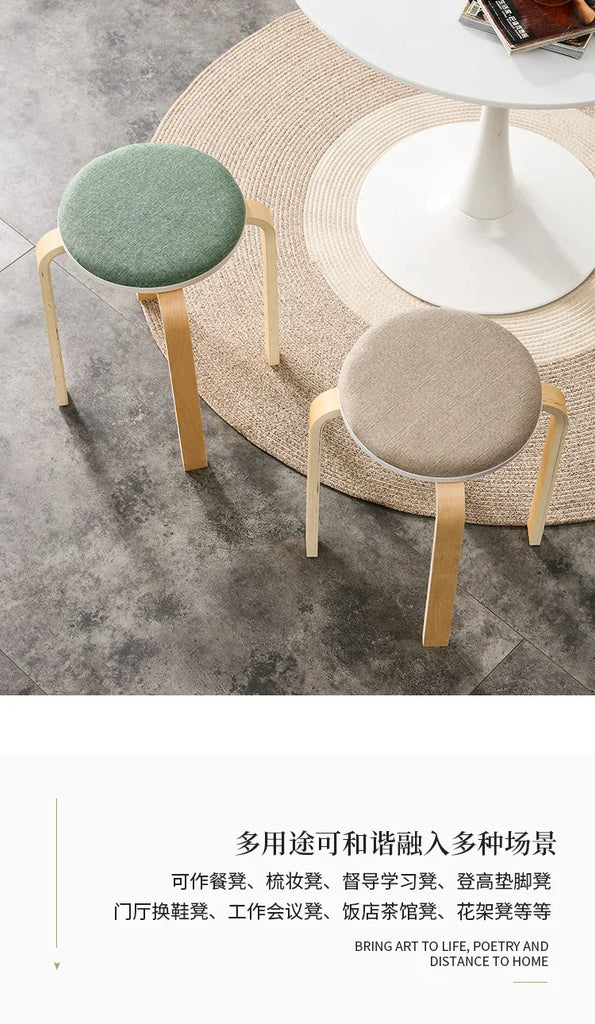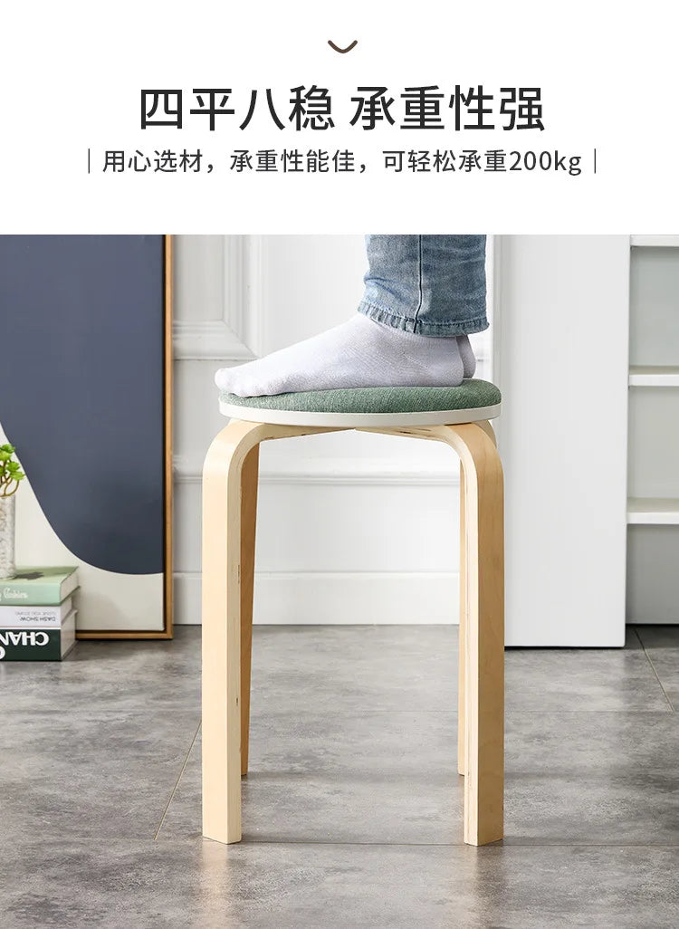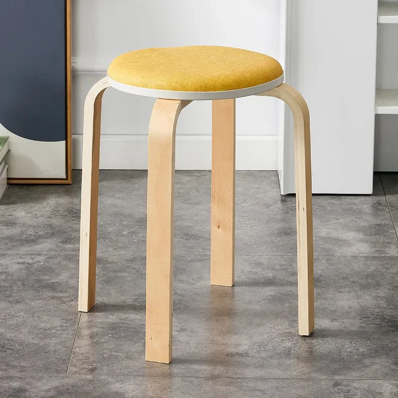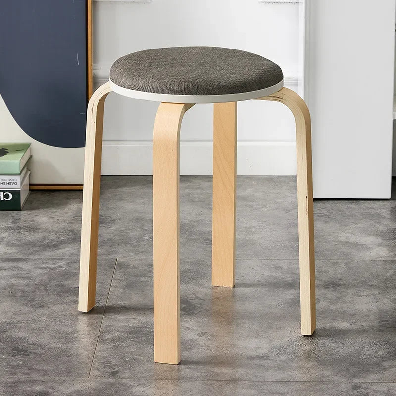 Curved Wooden Stool - High Round Dining Chair, Soft Surface Table Bench for Adults