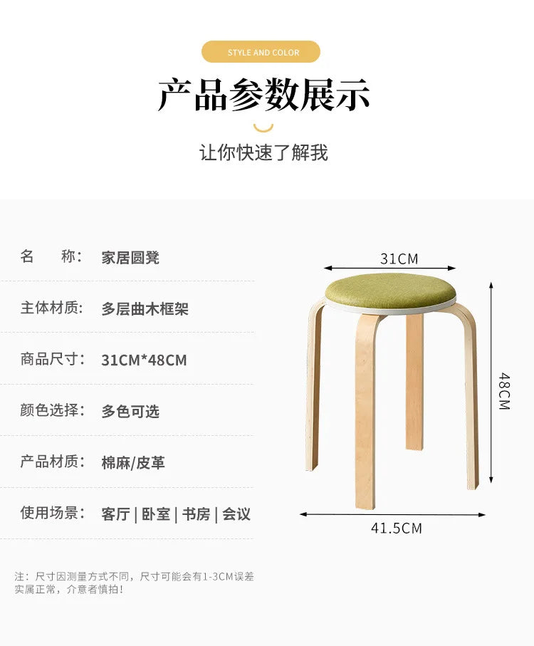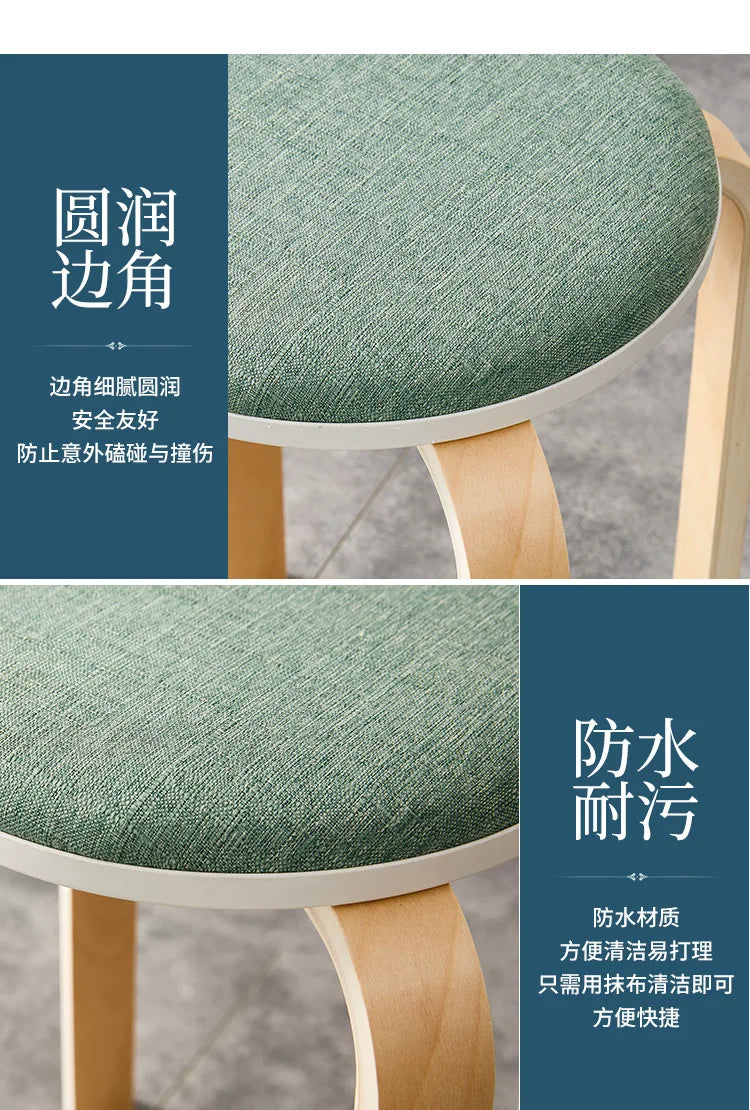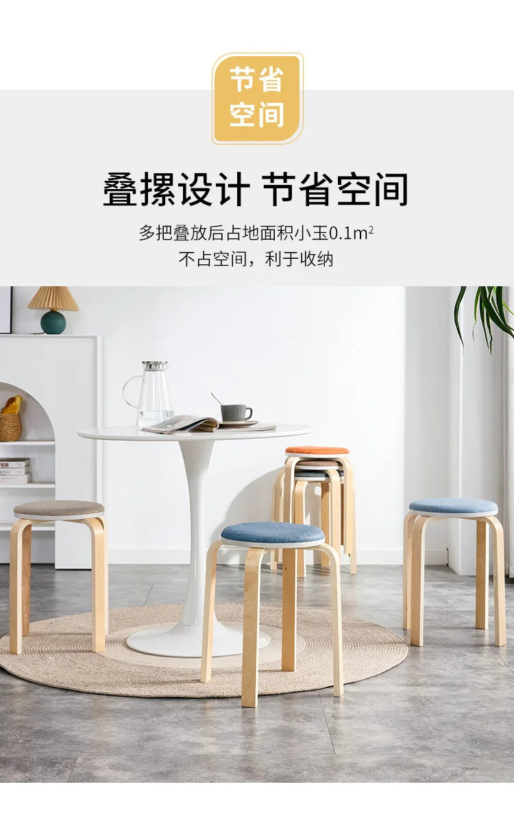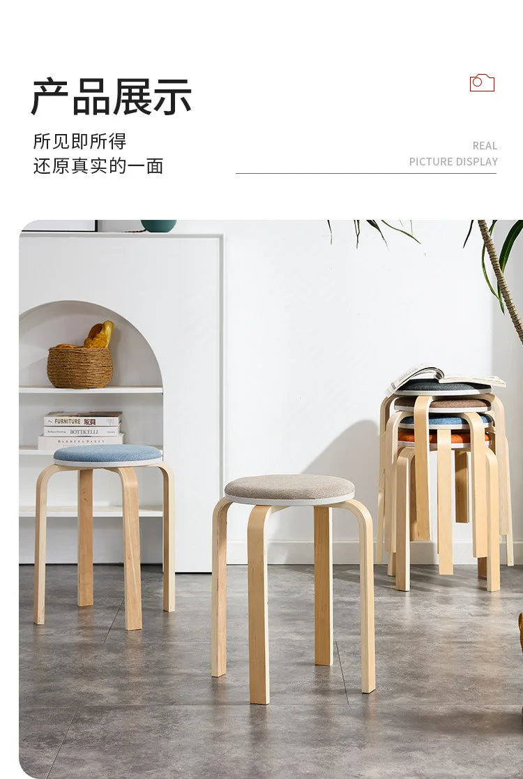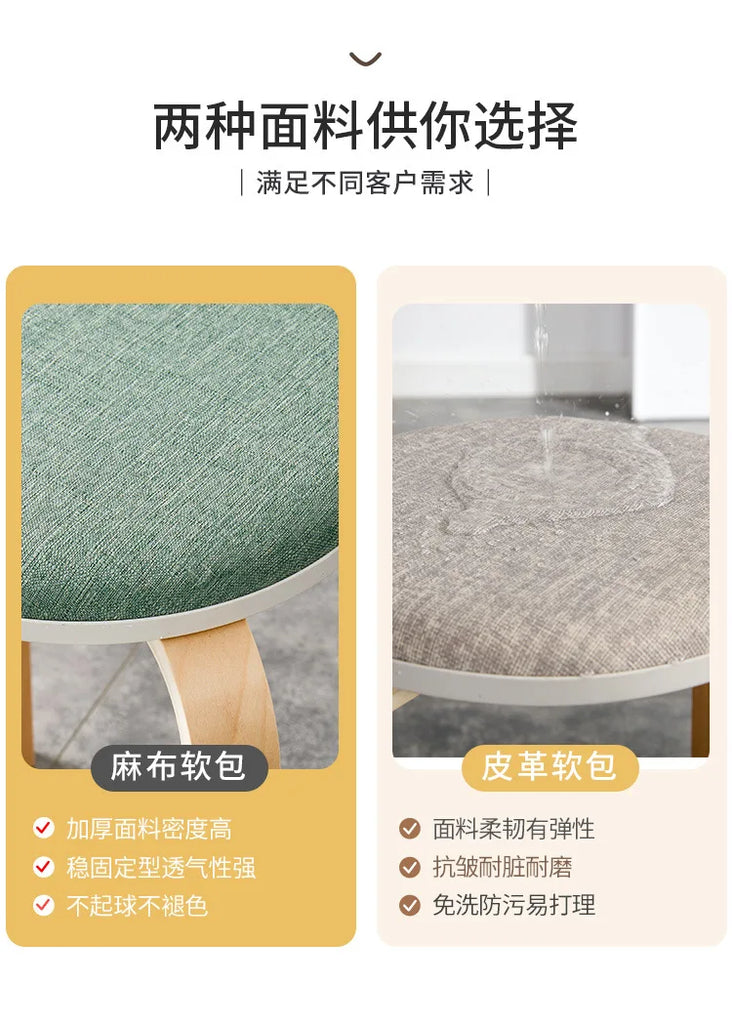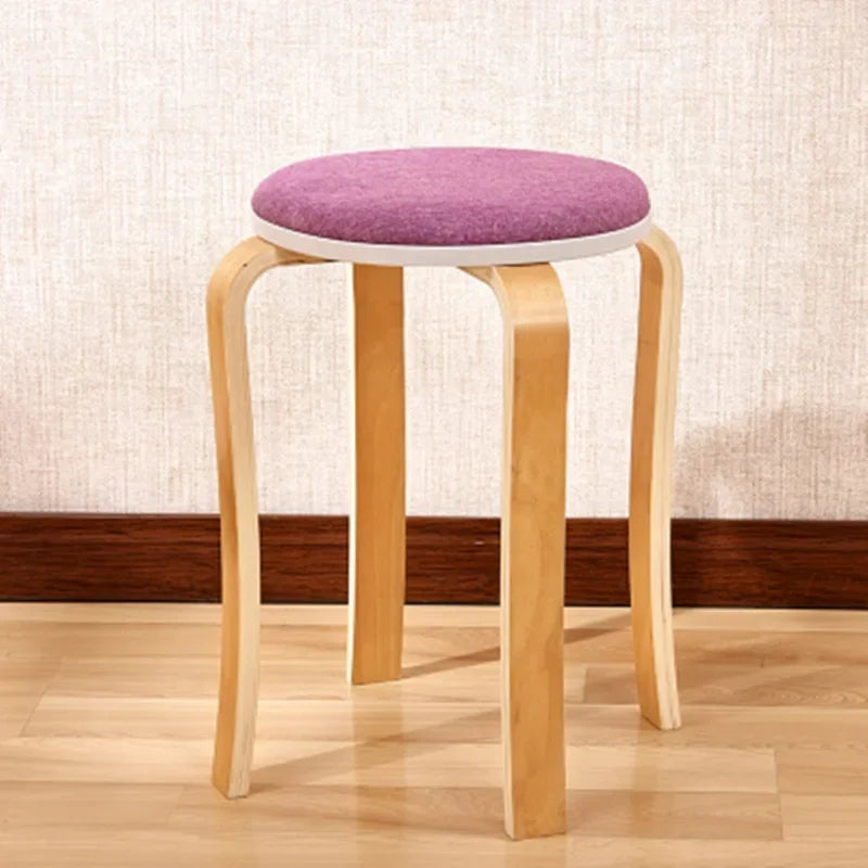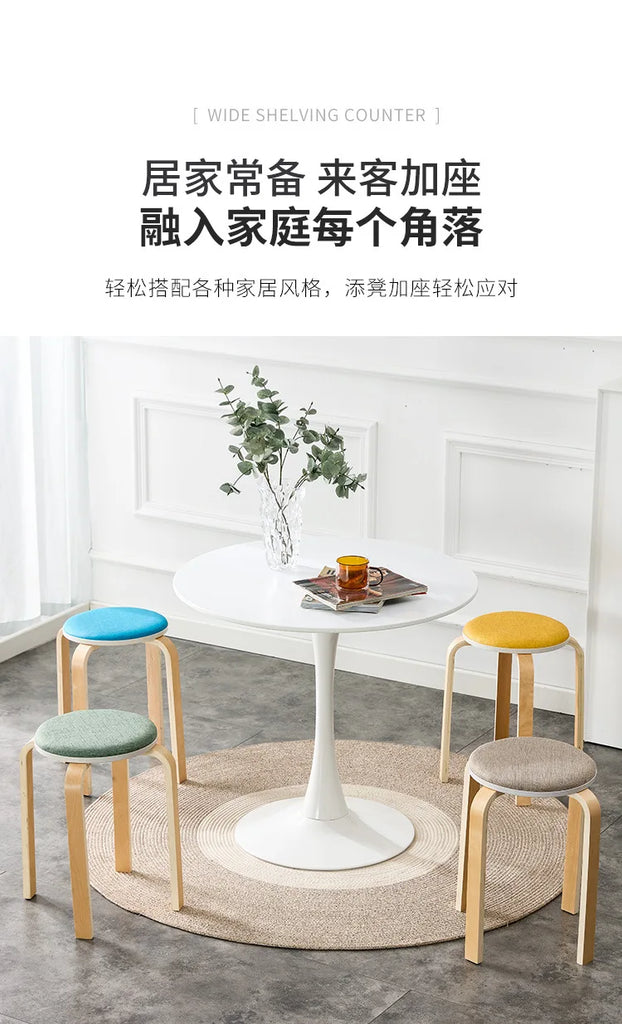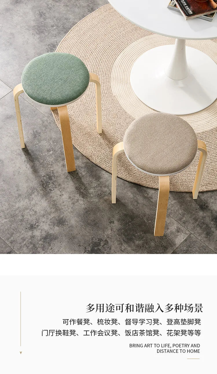 Curved Wooden Stool - High Round Dining Chair, Soft Surface Table Bench for Adults