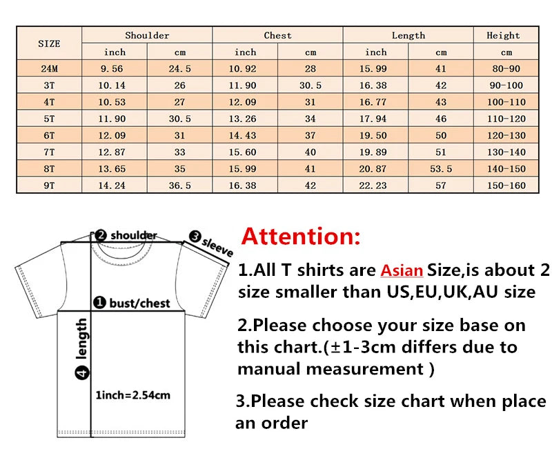 Elevate your child's wardrobe with these versatile and stylish tees, perfect for children aged 1 to 12 years. Designed with a classic O-Neck and short sleeves, these tees offer comfort and casual flair suitable for any season. Crafted from soft ModaL fabric, they feature engaging prints that make them a fun choice for everyday wear. Please note, these tees fit smaller than usual, so reviewing the sizing information is recommended to ensure a perfect fit.