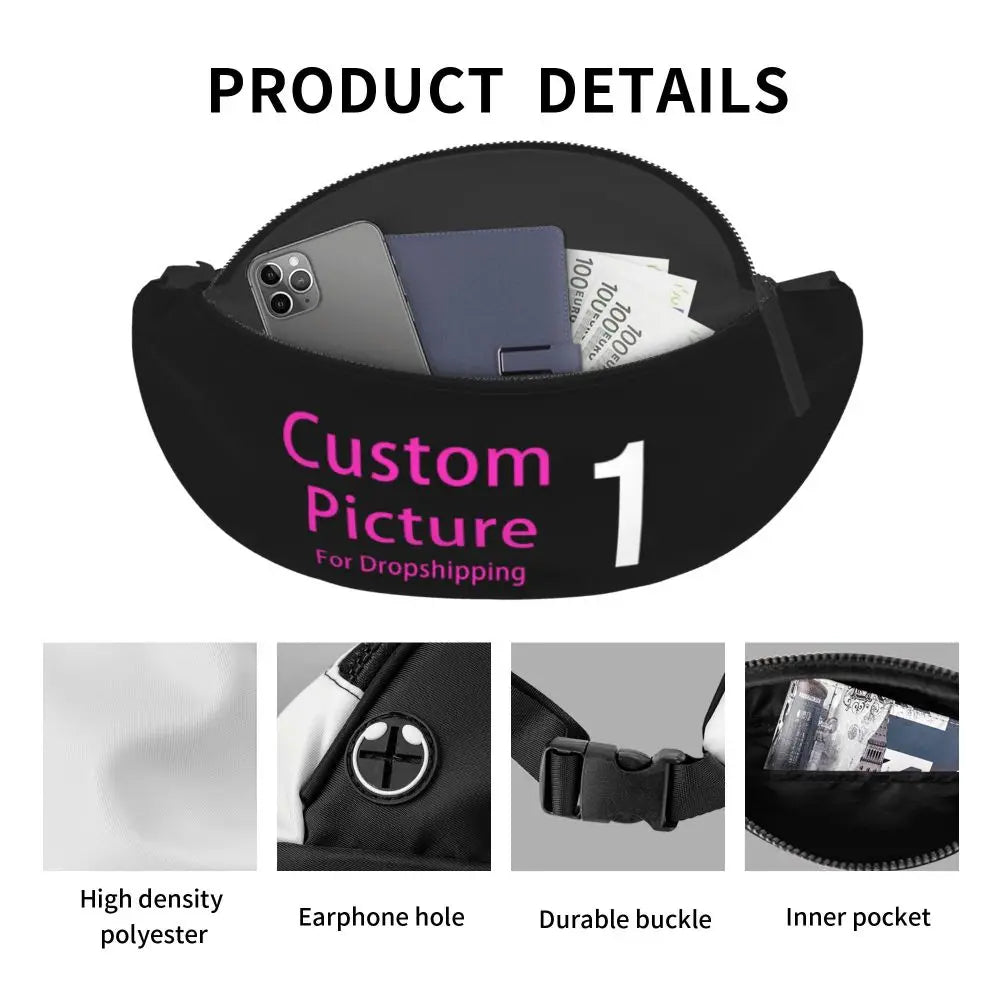 Custom Photo Logo Fanny Pack for Men & Women - DIY Print Waist Bag for Cycling & Camping, Phone & Money Pouch