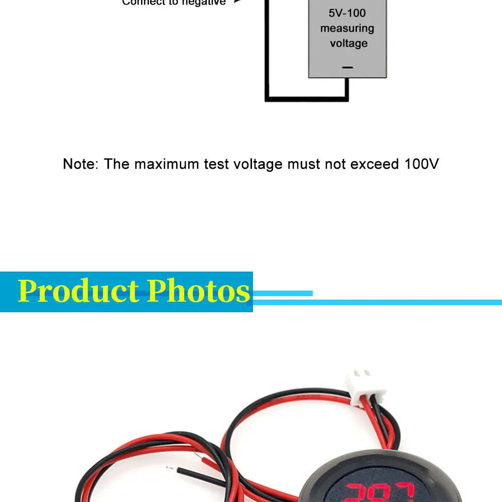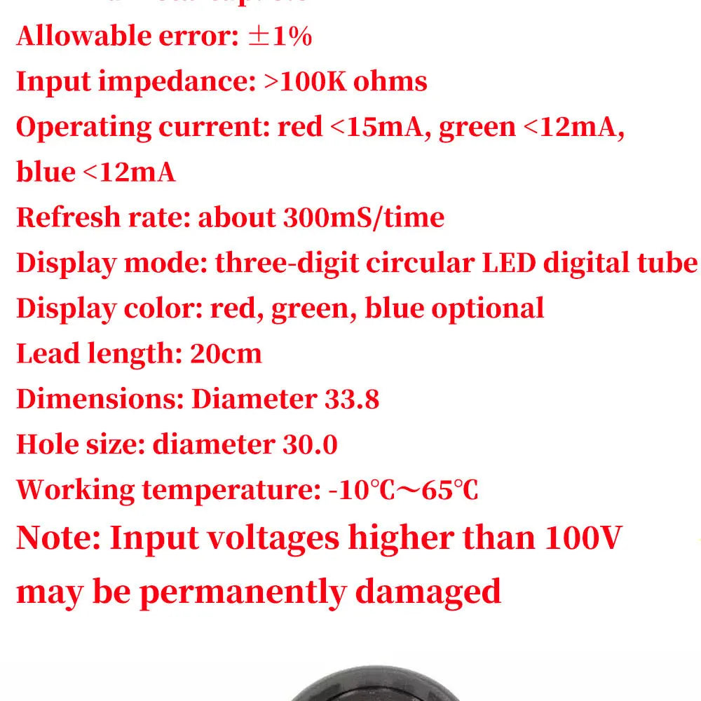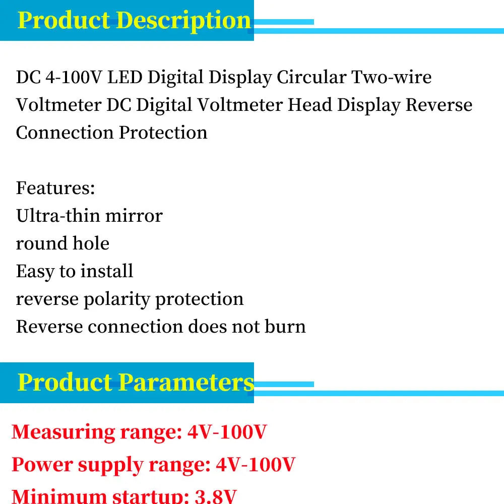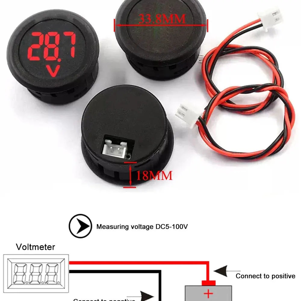 2-Wire LED Digital Voltmeter DC 4-100V Circular Display Reverse Protection