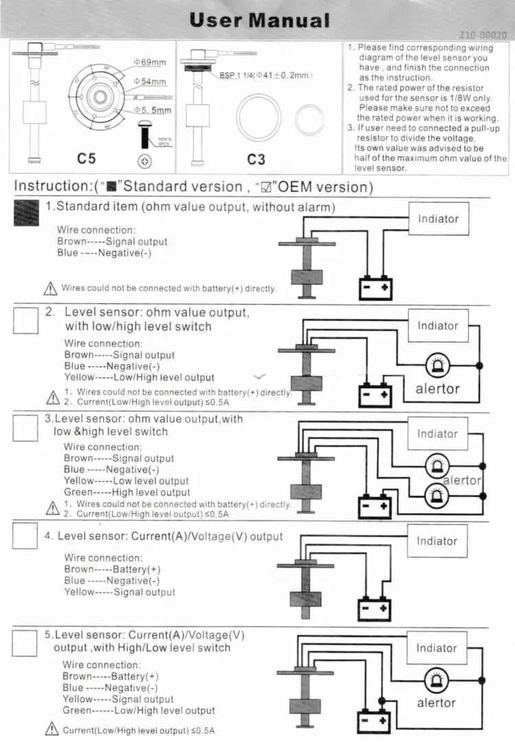 Note: Please note that this package includes the gauge only. Sensors for water or sewage levels are sold separately and can be customized on request.
