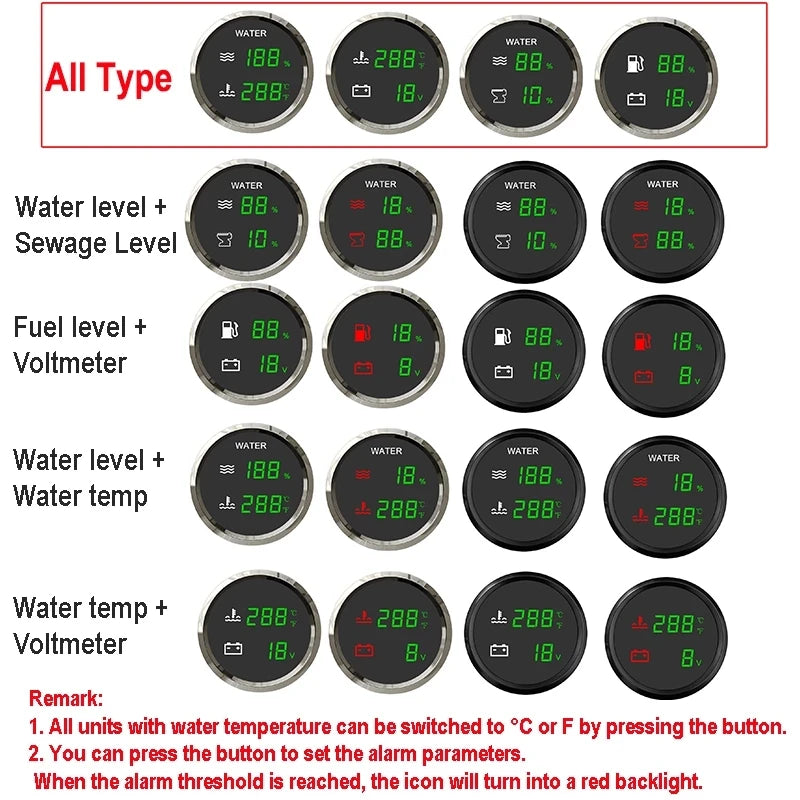 - Dual Gauge Functionality: Monitors both water and sewage levels.