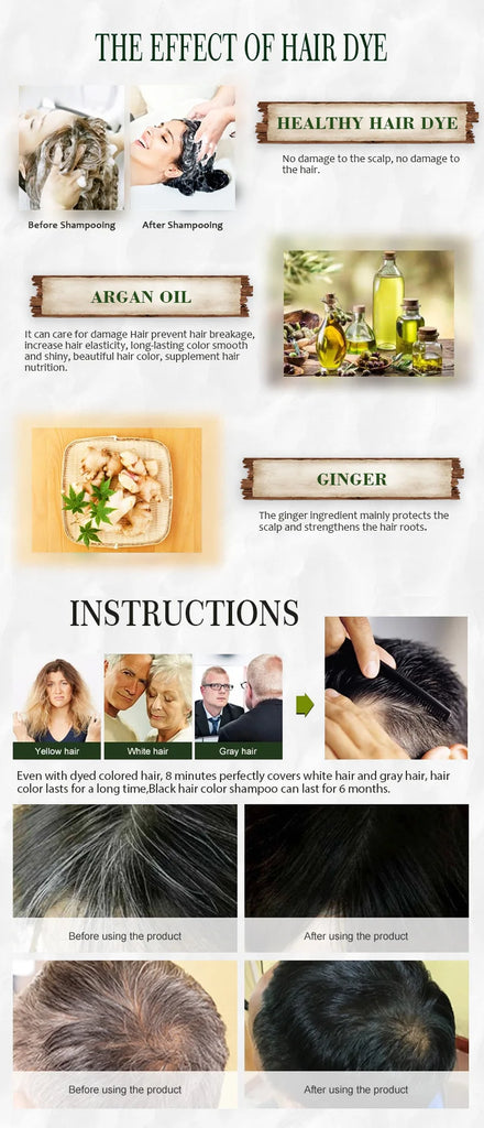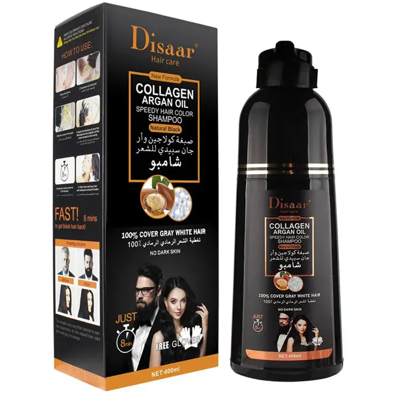 Argan Oil Hair Color Shampoo 400ml - Fast Gray Coverage, Natural Black, Repairs Damaged Hair
