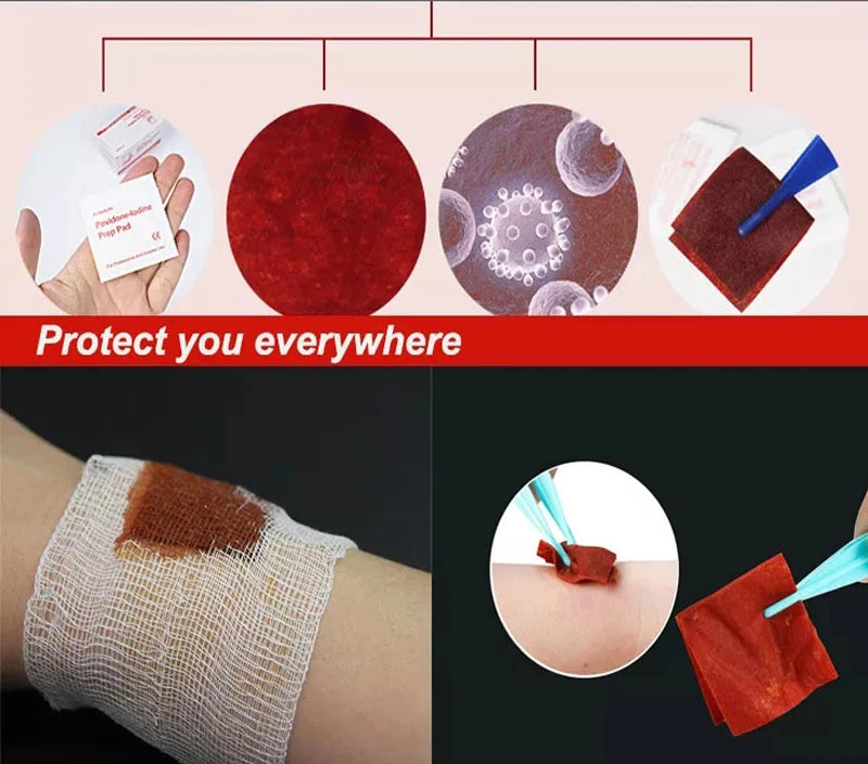 10pcs Disposable Povidone-Iodine Wound Disinfection Pads for First Aid, Travel, and Outdoor Use