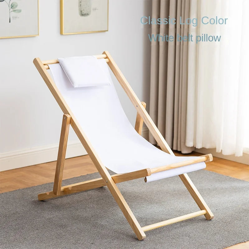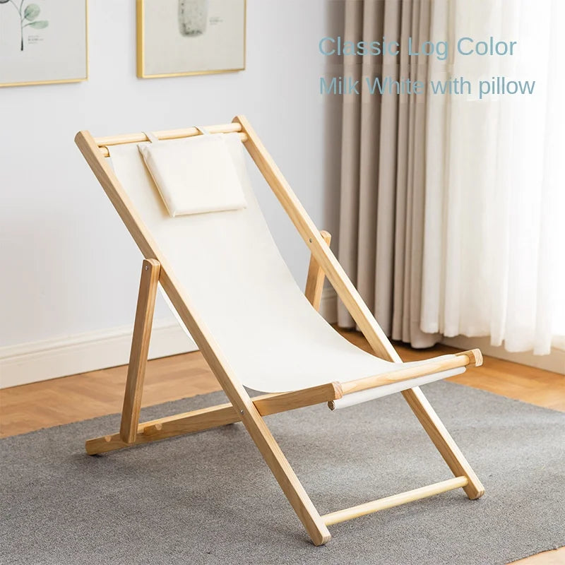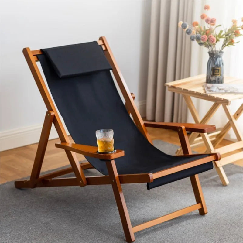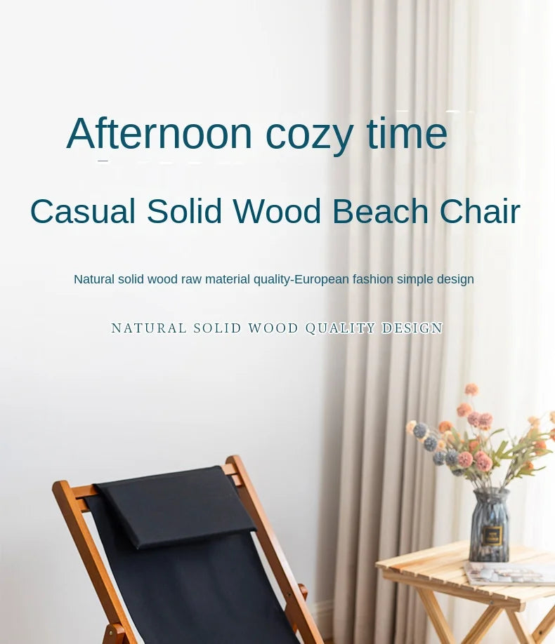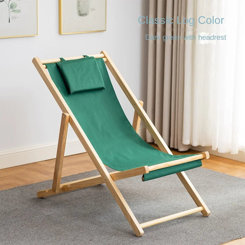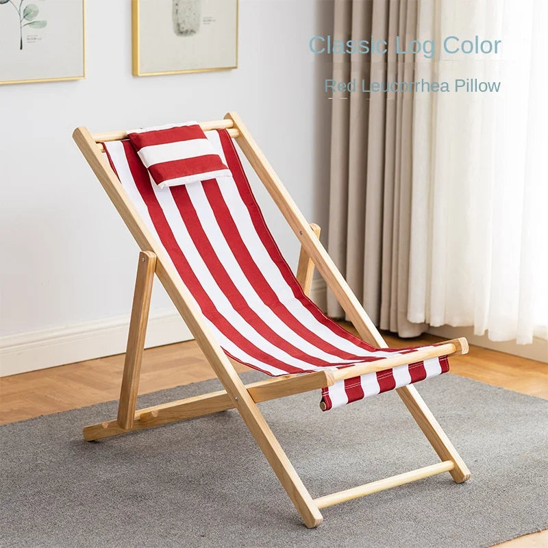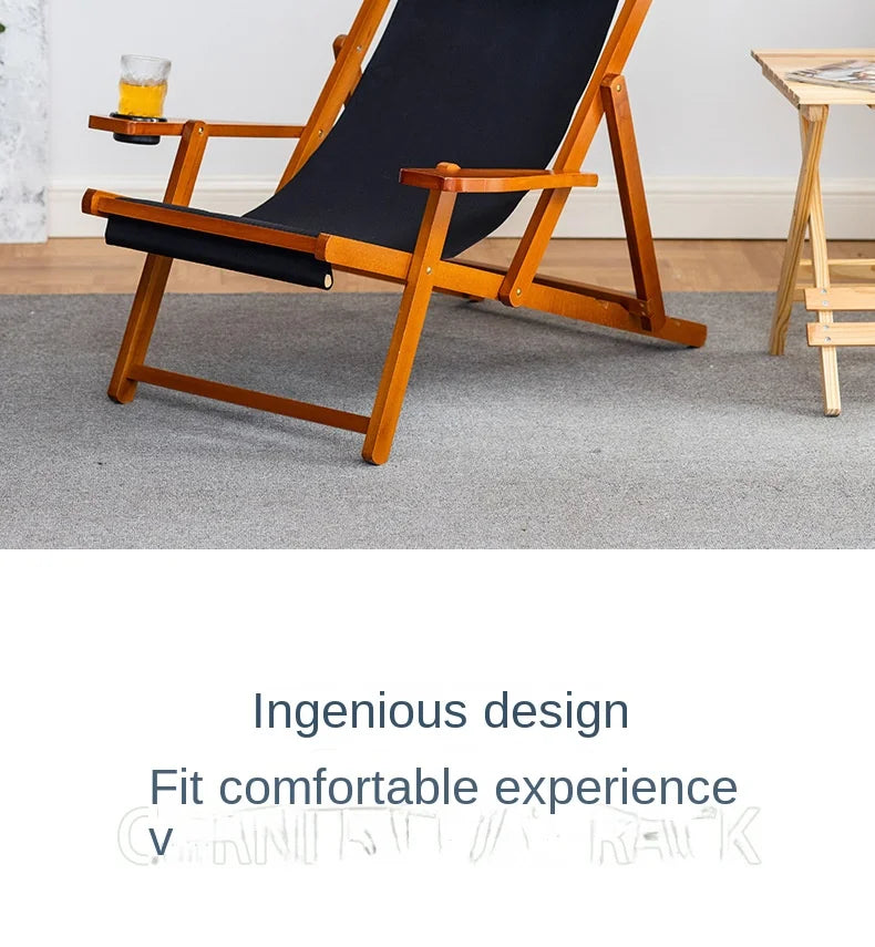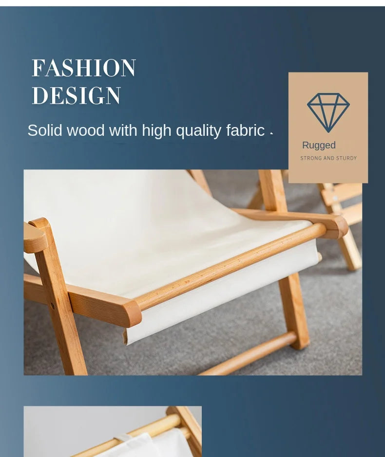 Folding Outdoor Wooden Beach Chair - Portable Recliner for Adults with Canvas Seat