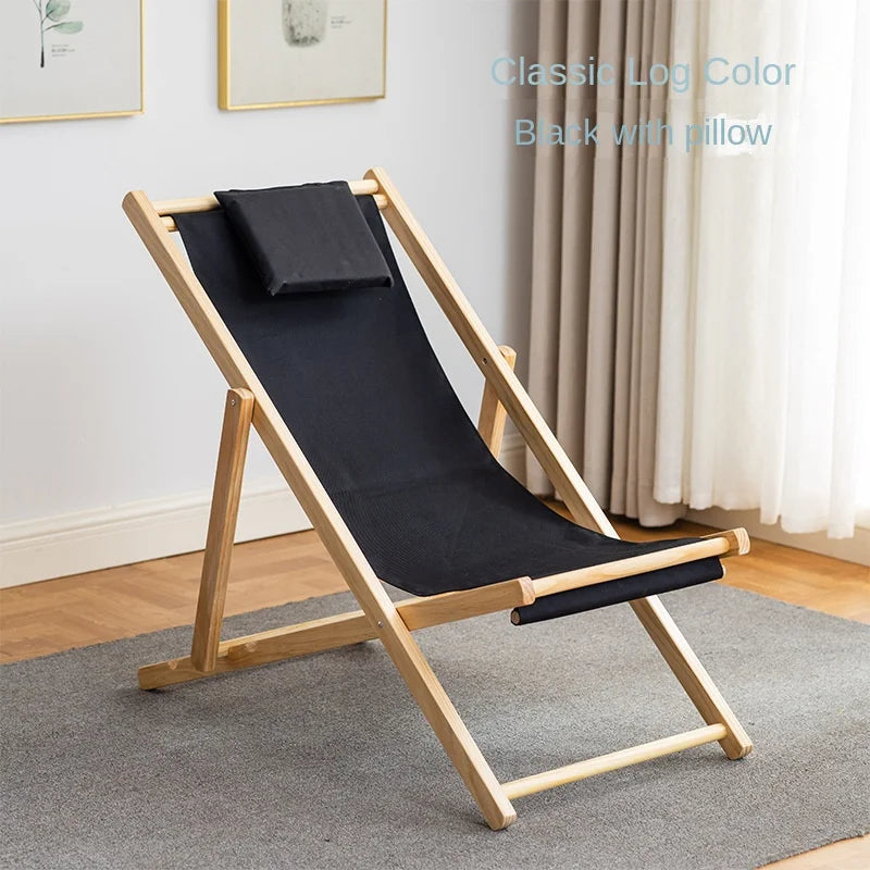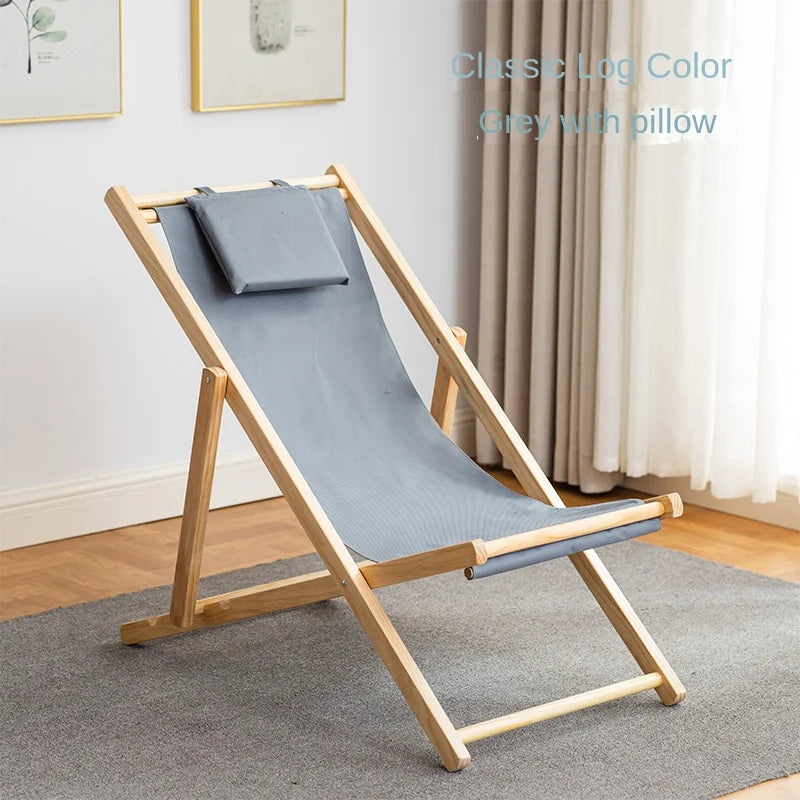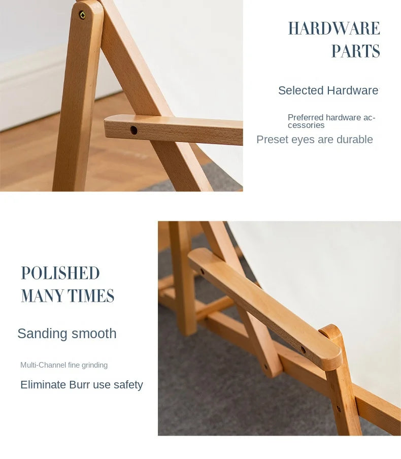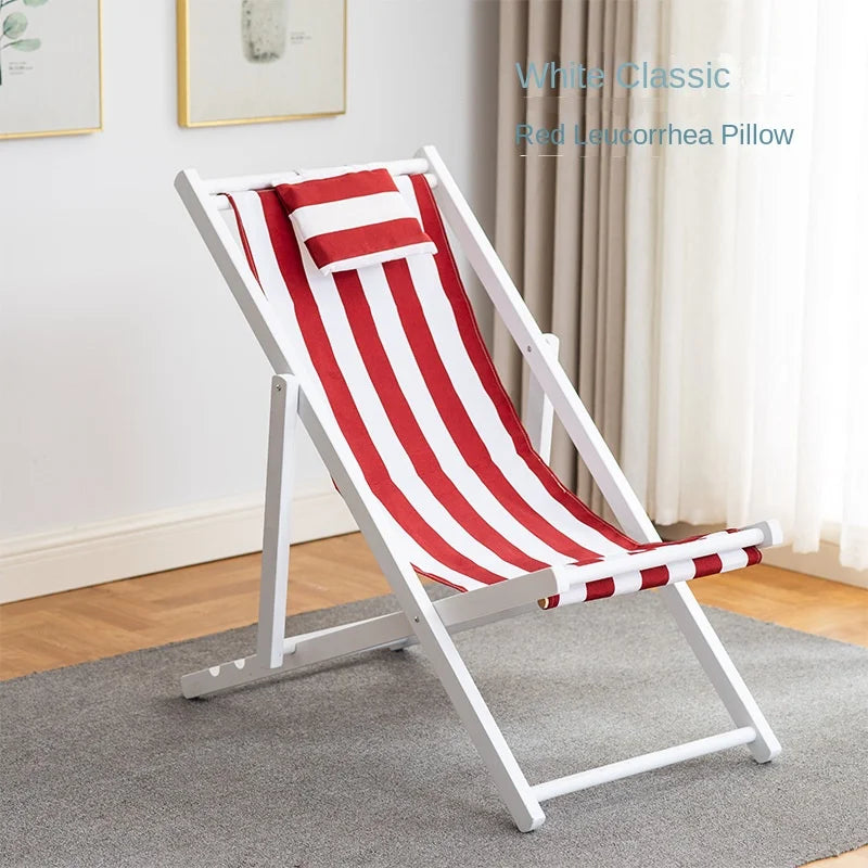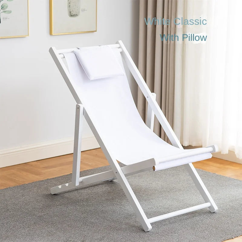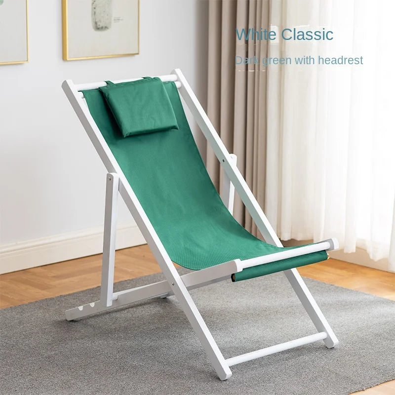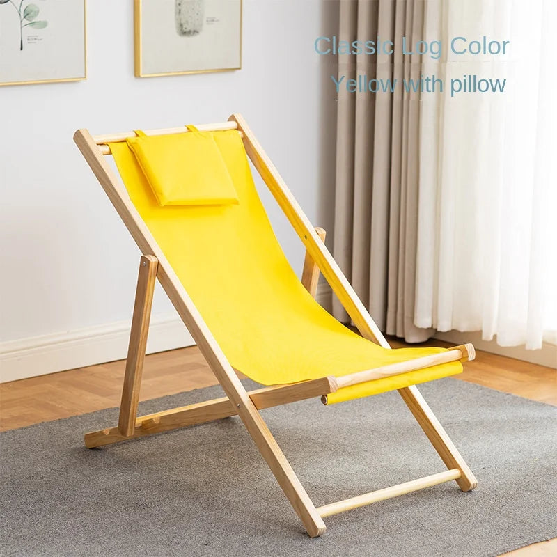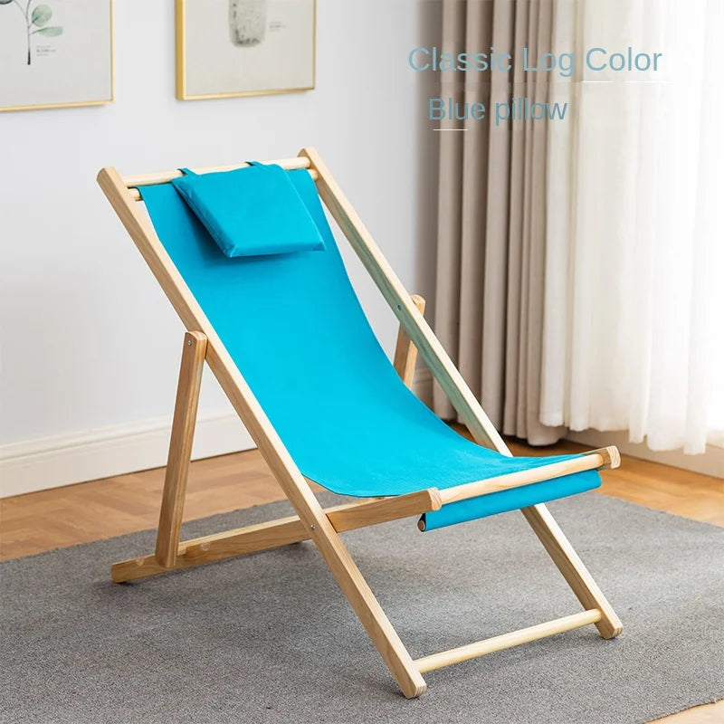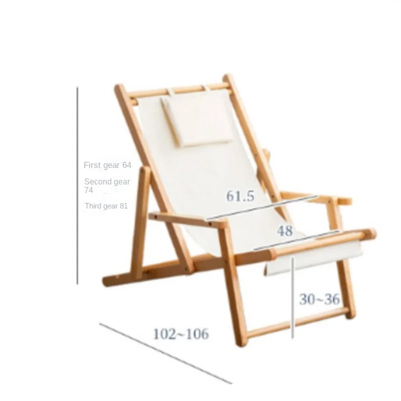 Folding Outdoor Wooden Beach Chair - Portable Recliner for Adults with Canvas Seat