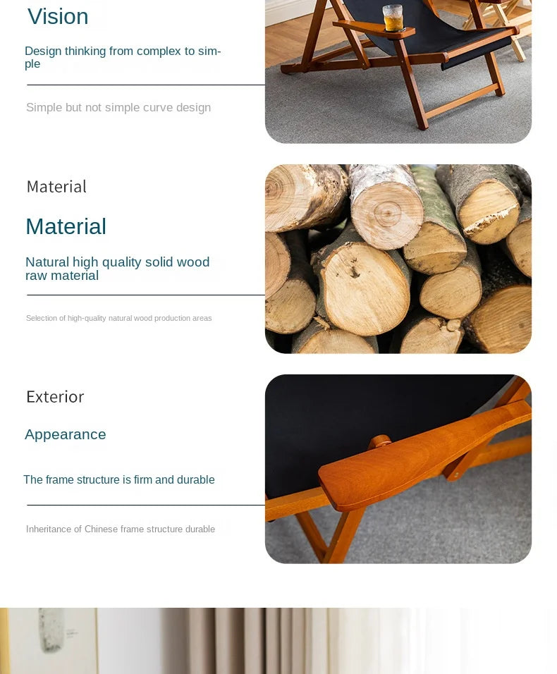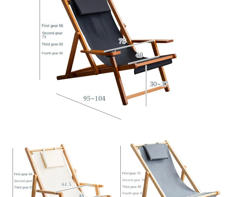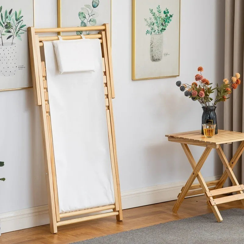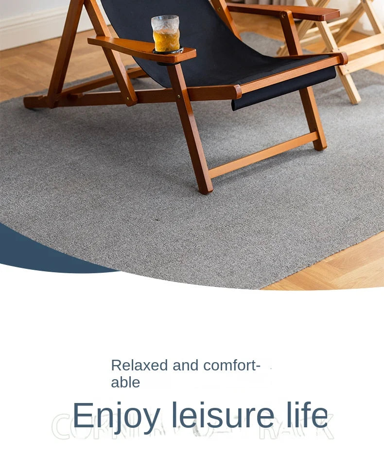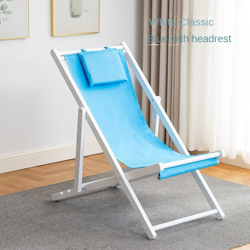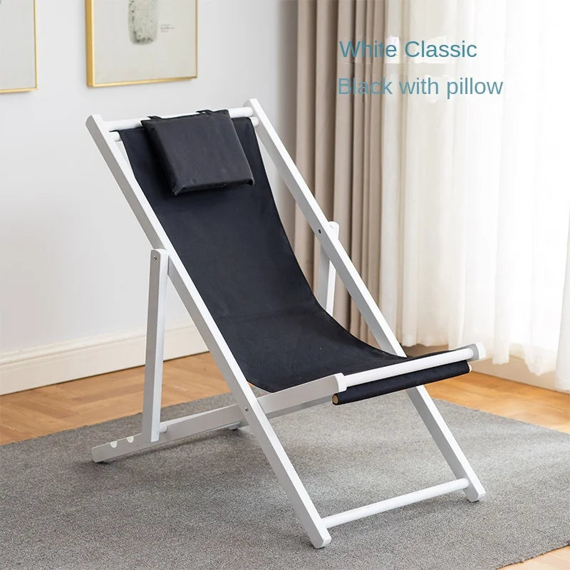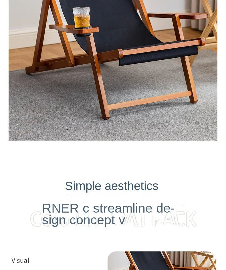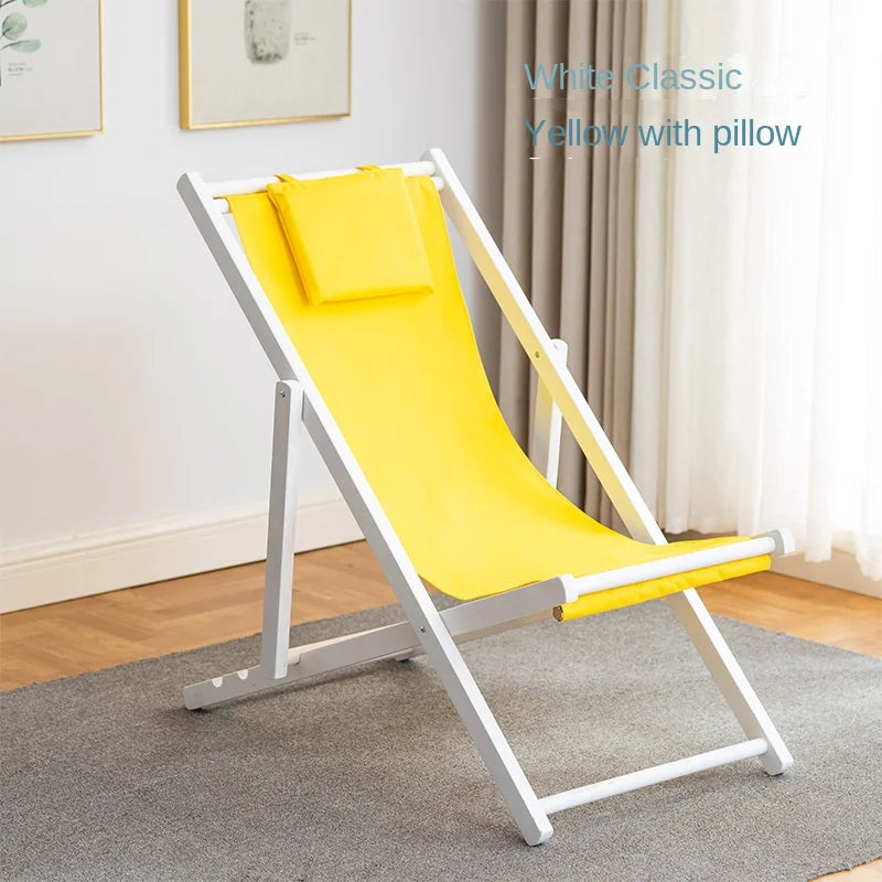 Folding Outdoor Wooden Beach Chair - Portable Recliner for Adults with Canvas Seat
