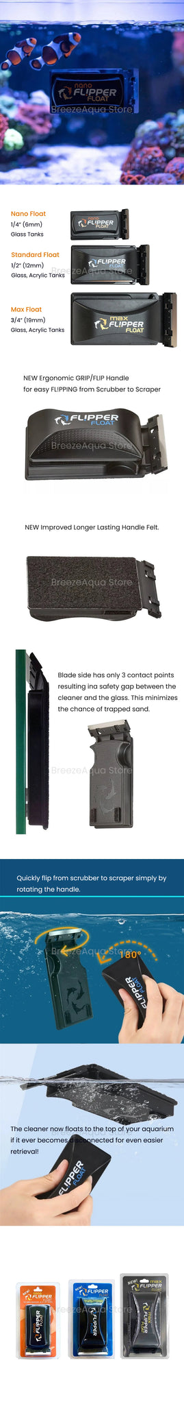 2-in-1 Magnetic Scrubber & Scraper Aquarium Algae Cleaner for Fish Tanks – Flipper Float Nano/Standard/Max