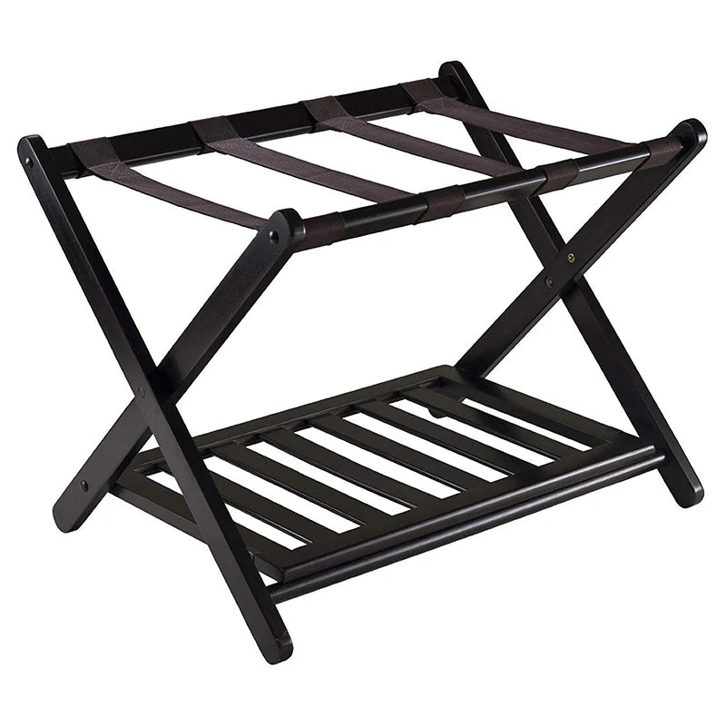 Foldable Wooden Luggage Rack with Shoe Shelf, Suitcase Stand for Hotel, Travel, Home Use