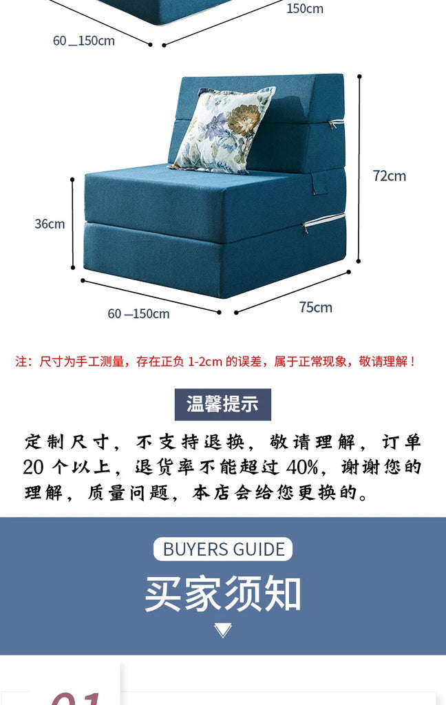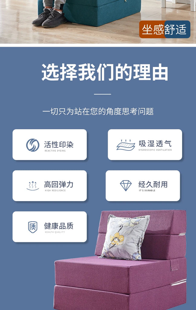 Foldable High-Rebound Sponge Sofa Mattress Nap Mat - Portable, Comfortable Sleep Pad for Home & Office