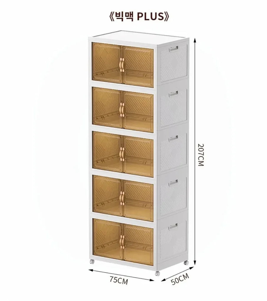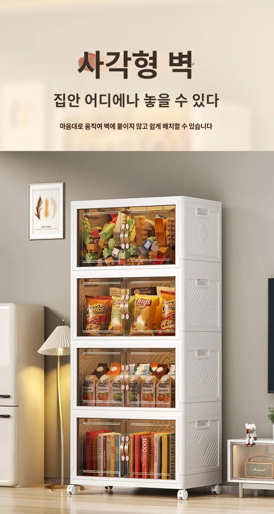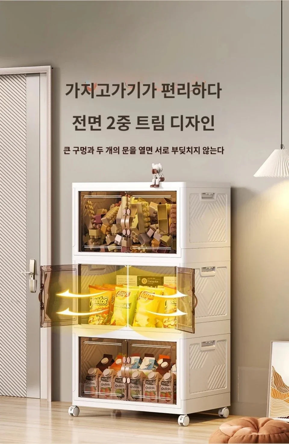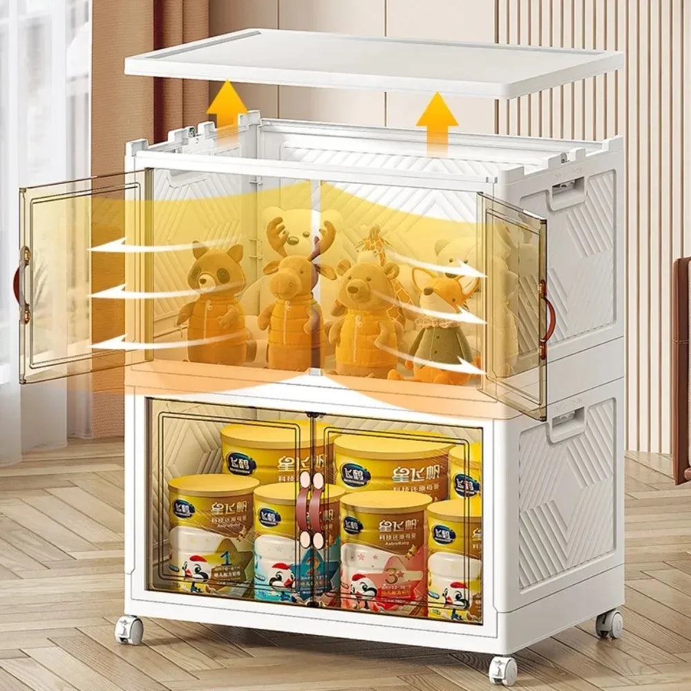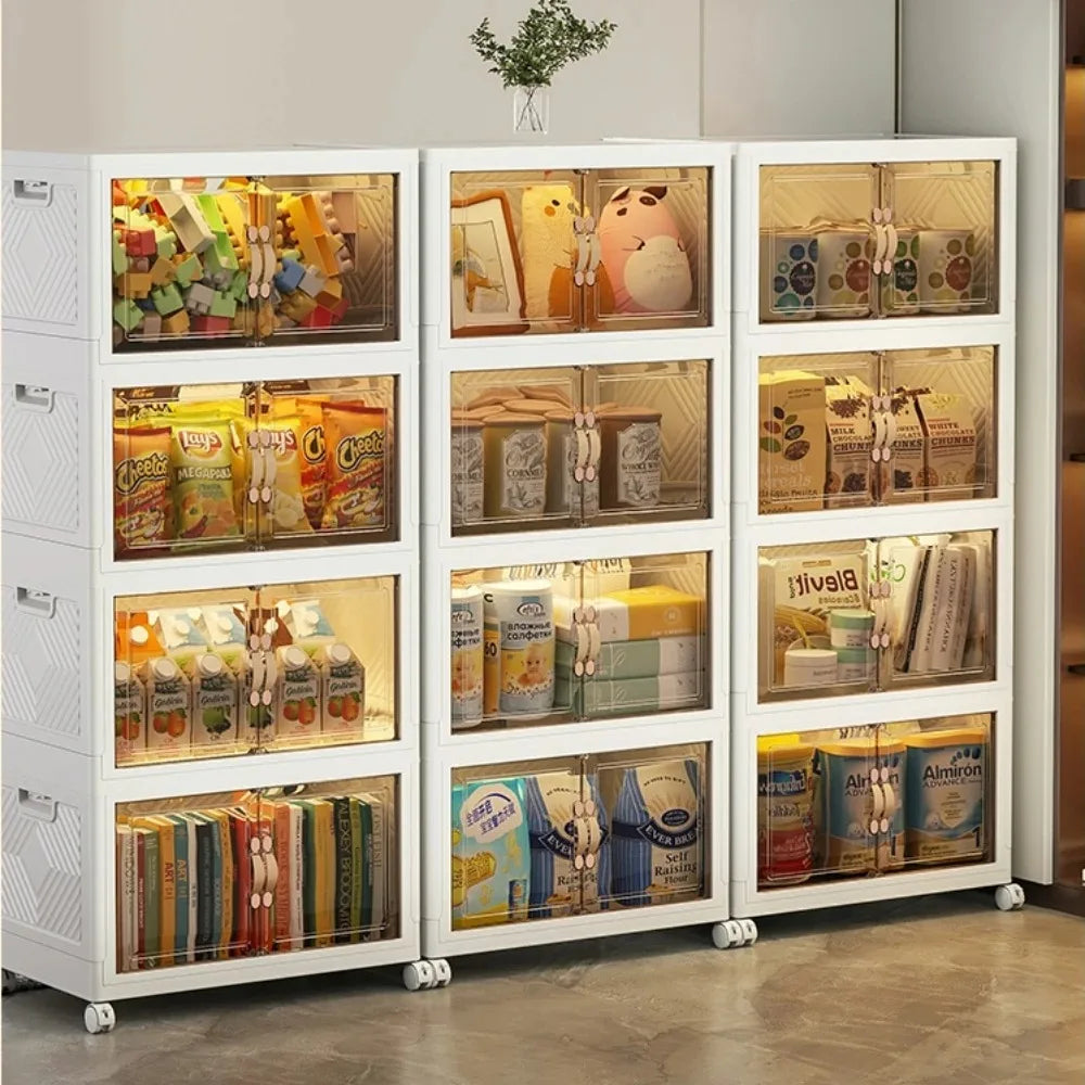 Elevate your home organization with our versatile and stylish storage cabinet, designed for modern living spaces. Crafted from durable plastic, this minimalist cabinet is perfect for a variety of uses—from storing shoes and toys to organizing stationery and books. Its foldable design saves space, while the upgraded universal wheels ensure easy mobility. The cabinet features a robust load-bearing capacity and a snap lock system for stable stacking. The magnetic suction door offers convenient access to your belongings.