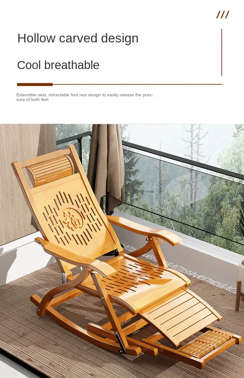 Folding Bamboo Rocking Chair for Balcony & Home, Easy Leisure Nap Recliner, Portable Lounge Chair